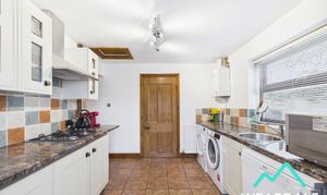 - Positioned to the rear of the property, accessed internally from the sitting room, and providing onward internal access to the shower room, and external access to the rear garden - Double-glazed composite framed window to the Eastern aspect - Tiled flooring - Neutrally decorated - Range of over/under counter storage units - Laminate work surfaces with tiled splashbacks - Stainless steel sink - Built-in gas hob with overhead extractor - Plumbing for washing machine and tumble dryer - Plumbing for dishwasher - Space for free-standing appliances - Ceiling light fitting - Radiator - The property’s gas Combi boiler is located here