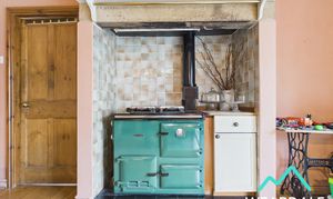 - Positioned to the rear of the property, accessed from the hallway, and providing onward internal access to the conservatory and kitchen - Well-proportioned lounge/dining area - Wooden flooring - Exposed wooden ceiling beams - Wood panelled ceiling - Feature aga set on a tiled hearth, with tiled surround and wooden mantle - Ceiling light fitting and two wall mounted light fittings - Radiator - Built-in under stairs storage cupboard - Ample space for lounge or dining furniture