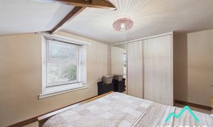 - Positioned to the rear of the property and accessed from the first stage of the landing - Well-proportioned double room - Double-glazed uPVC window with deep wooden sill to the Southern aspect, looking over the rear garden and providing beautiful views of the surrounding hillsides - Carpeted - Neutrally decorated - Pitched ceiling with exposed wooden ceiling beams - Traditional fireplace with iron surround and mantle - Integrated wardrobes covering the Western wall - Central ceiling light fitting - Radiator - Ample space for free-standing storage furniture