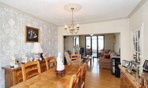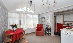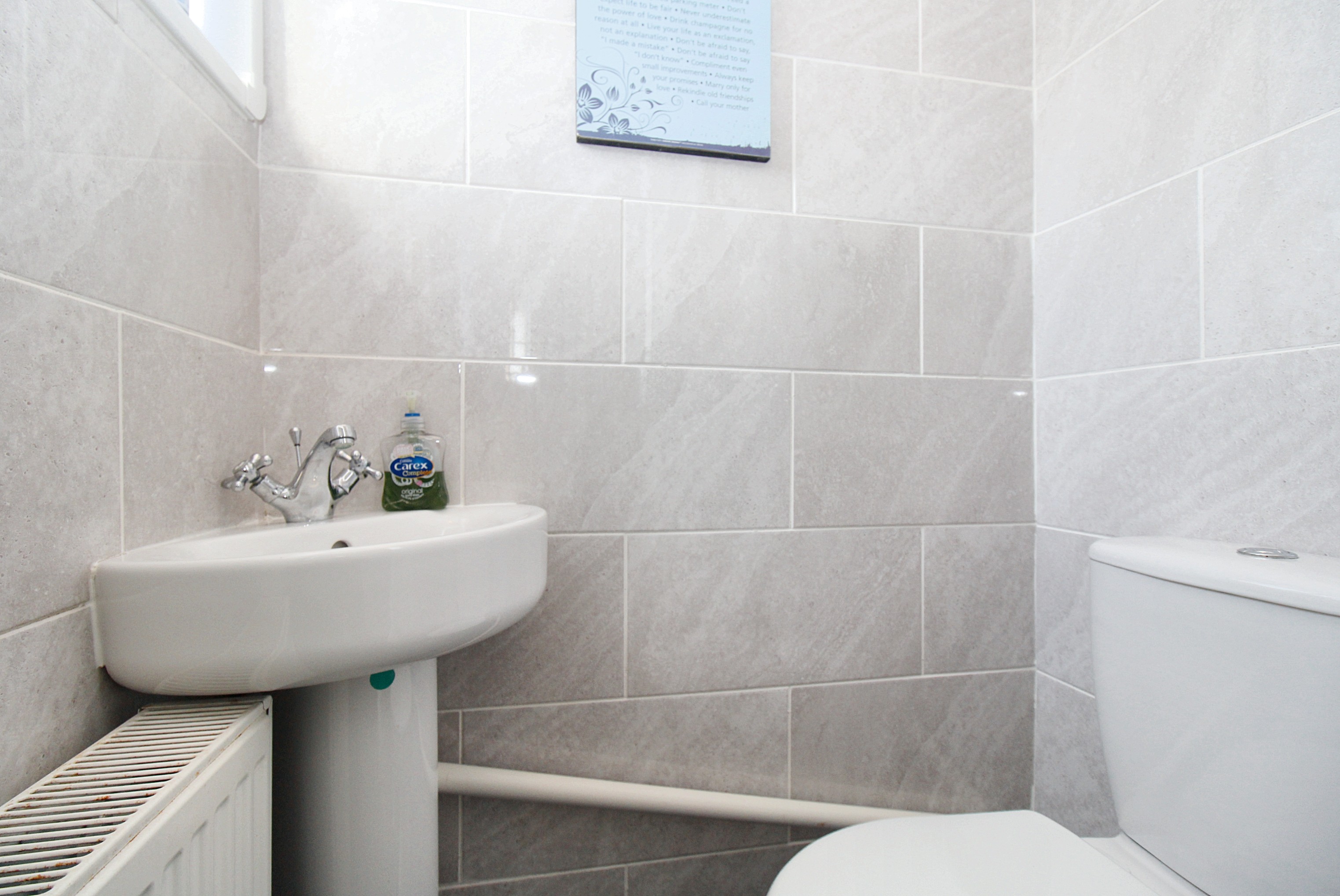 With tiled flooring, doors leading to the downstairs WC and rear garden.