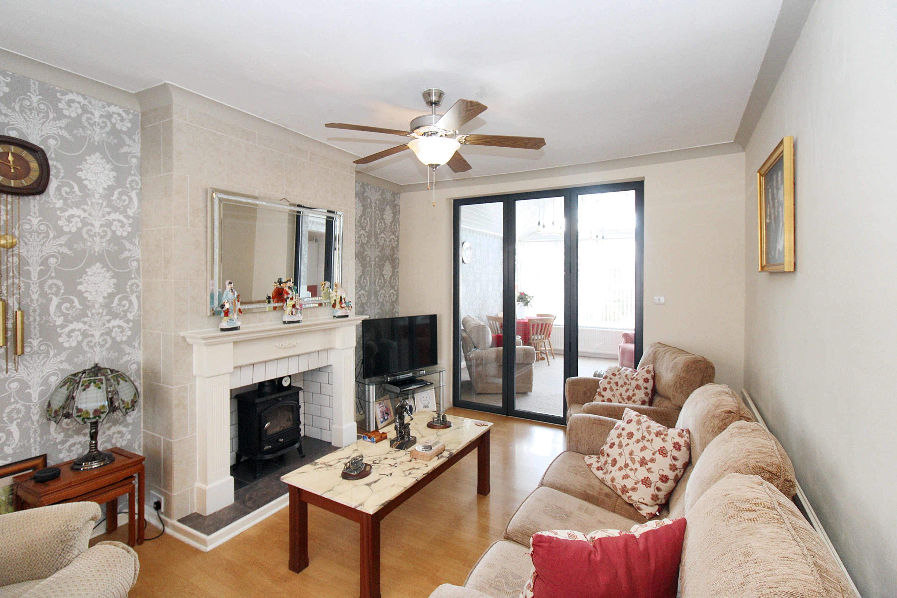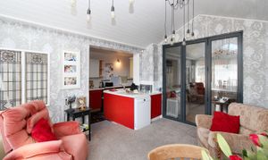 With laminate flooring, double glazed window, radiators, log burner and bi-folding doors leading to the sitting room.