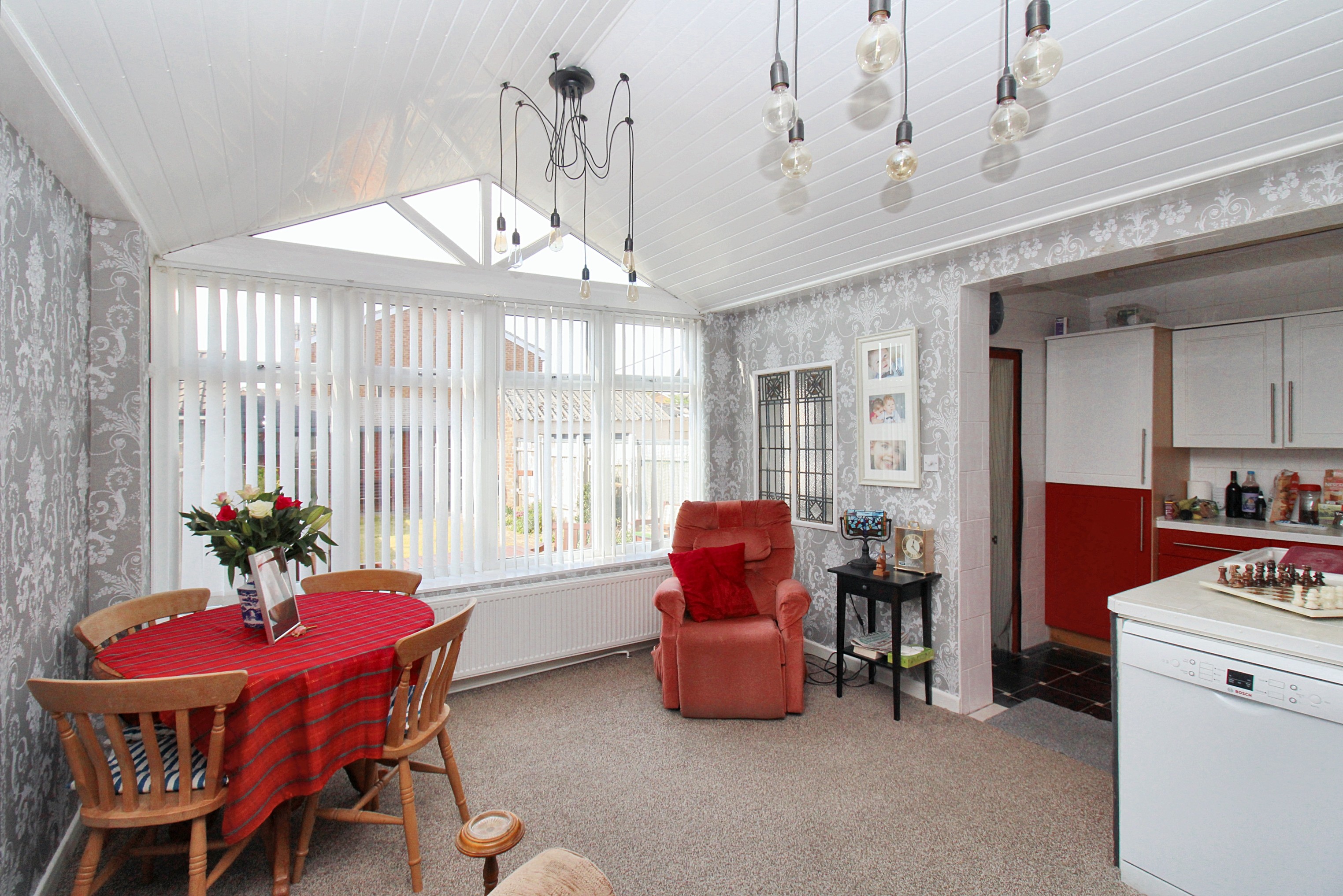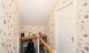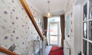 With carpet flooring, radiator, stairs leading to the first floor, doors leading to the dining area/lounge and kitchen.