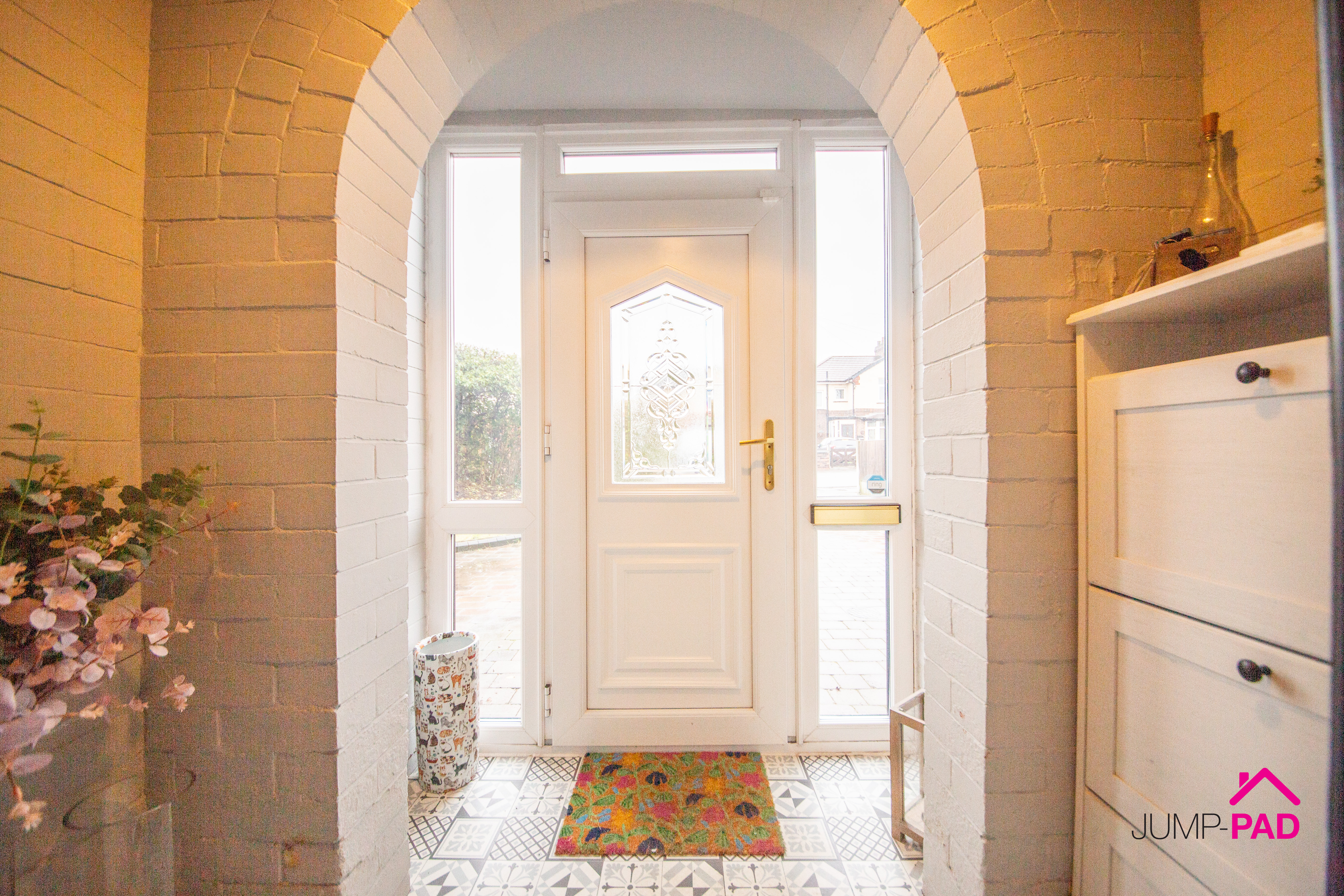 Enter the property through a UPVC door into the generous entrance porch with feature tiled flooring. and painted brick walls.