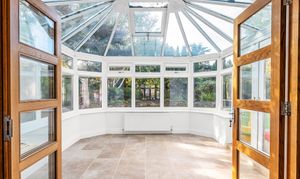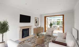 - Bay-fronted sitting room with open fire and folding doors to the conservatory