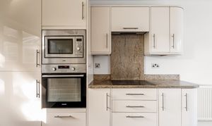 - Modern kitchen with high-gloss cabinets, granite worktops, and integrated appliances