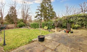 A pleasant rear garden with a secluded feel and leafy outlook. There is a raised patio perfect for outdoor entertaining in the summer months, and a lawn surrounded by flower and shrub borders.