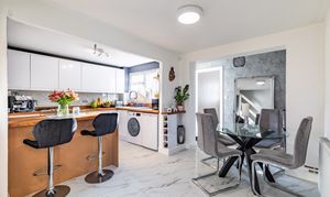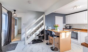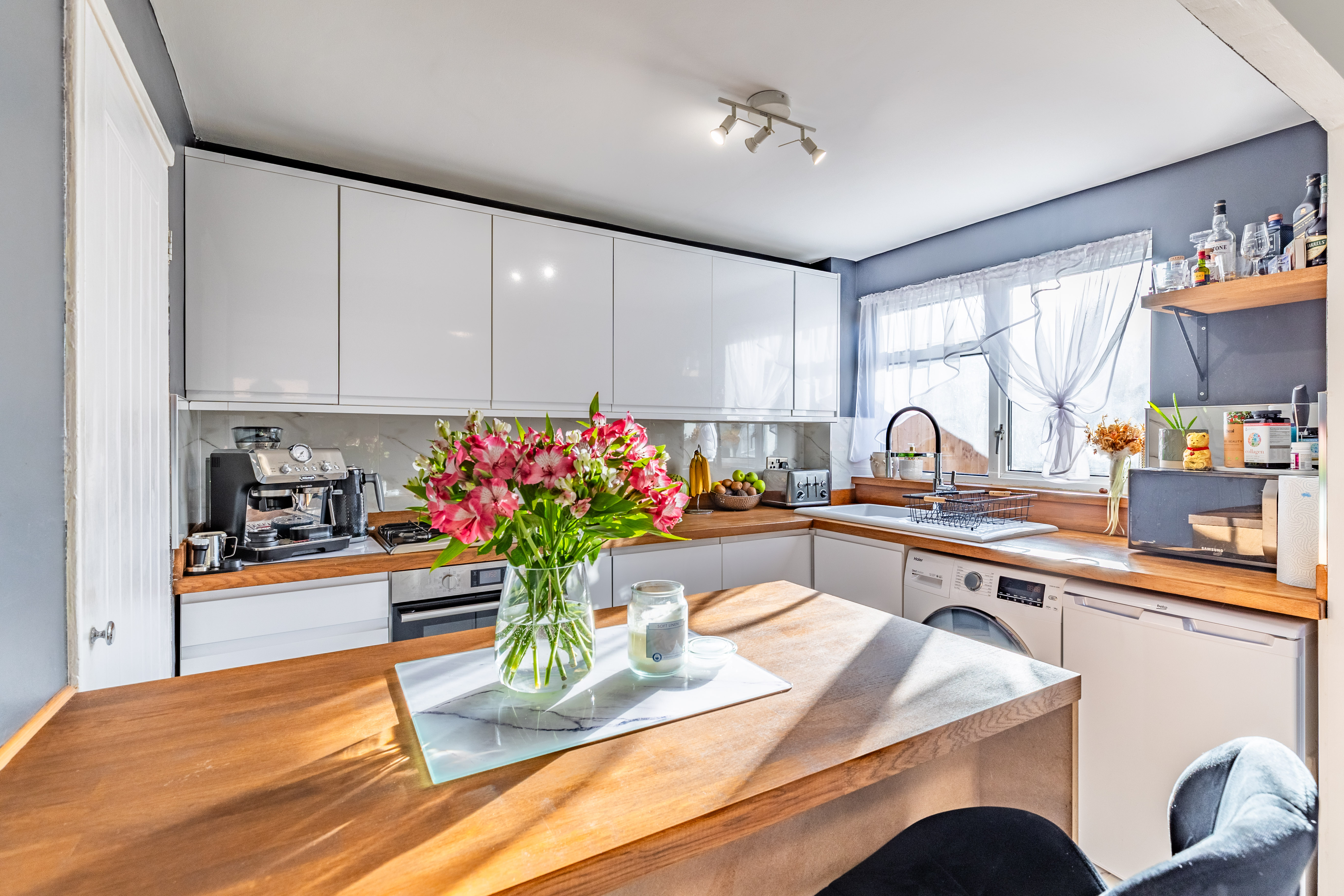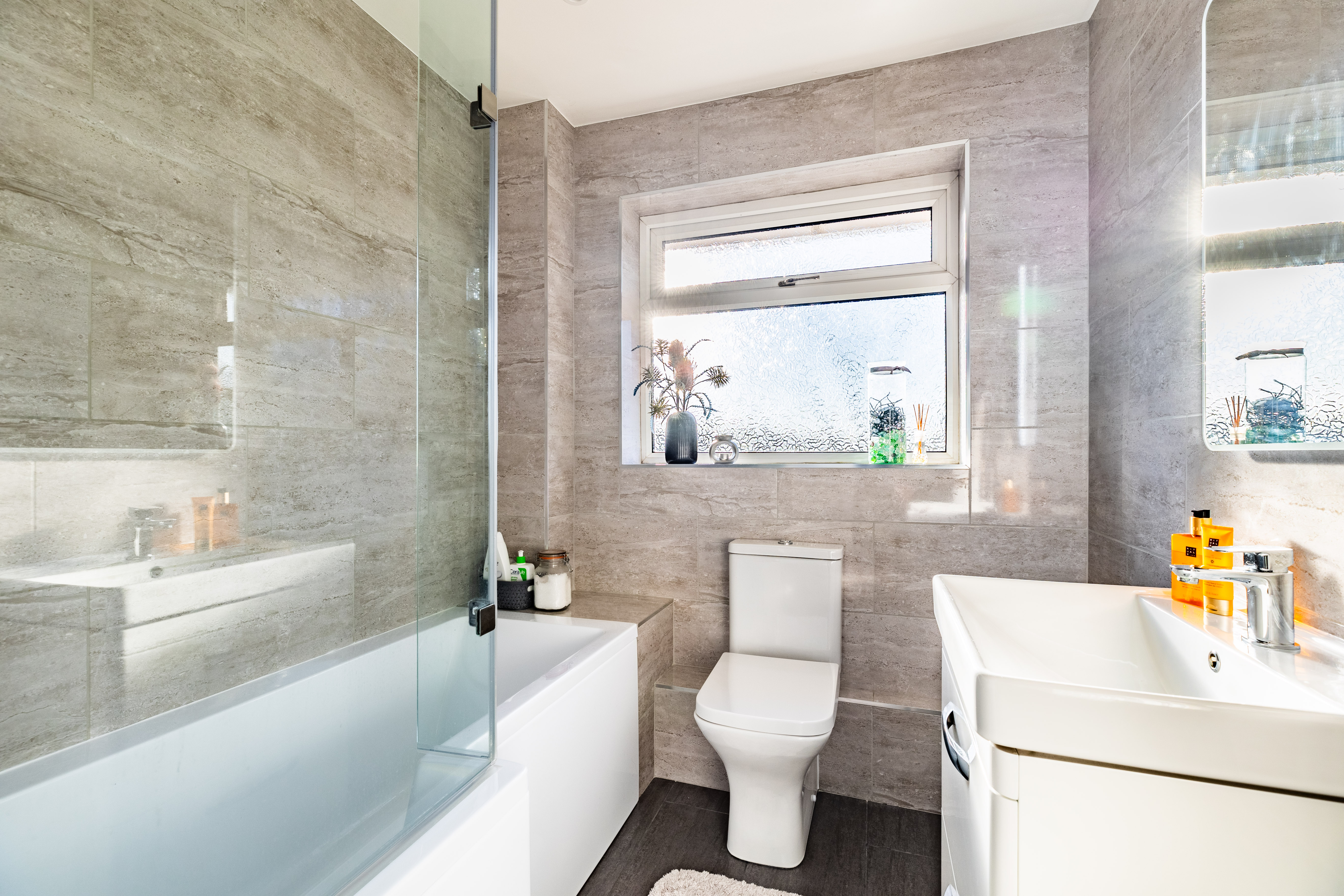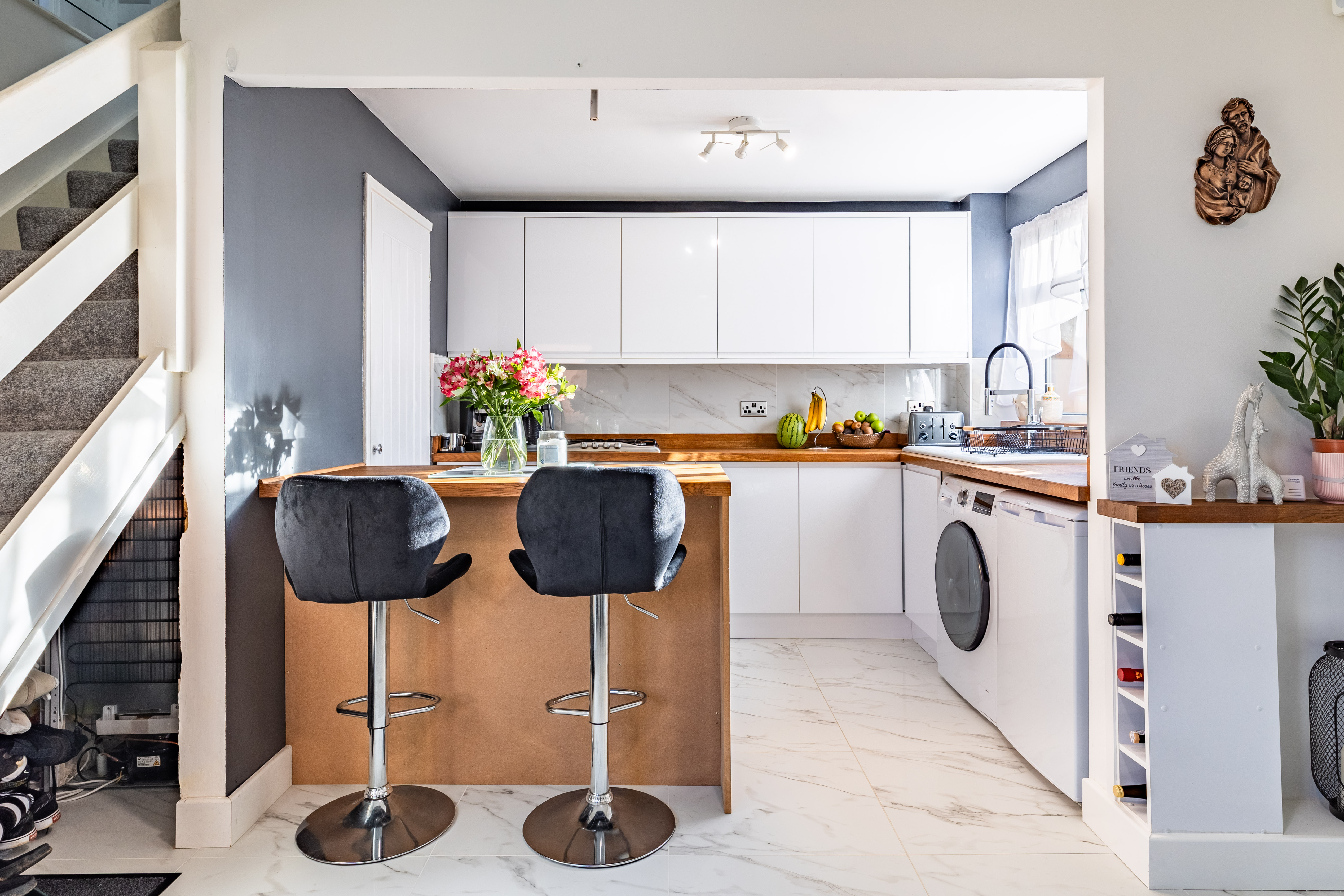 Enter the property into the bright, modern kitchen/diner (recently renovated in 2024), which features solid oak worktops, space for a washing machine and dishwasher, under-stair storage, and stylish tile flooring. The fully refurbished living room offers a cosy and welcoming atmosphere, while the downstairs extension provides a space that’s ideal for a home office, gym, or extra bedroom.
