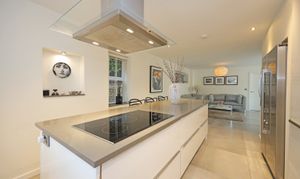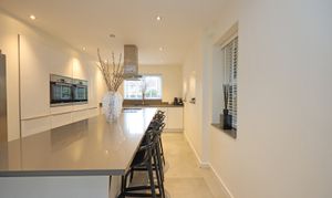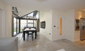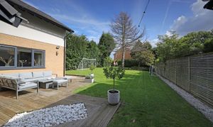 A beautiful and stylishly appointed modern executive detached family home, being one of only two adjacent properties constructed approximately 10 years ago. Boasting a wealth of architectural design features mixed with an extremely practical and spacious family layout with security gated vehicle access and a large private rear garden. Accommodation includes an imposing L shaped open plan family dining kitchen, which Incorporates a comprehensive kitchen range including a large island/breakfast bar and a gallery landing overlooking the glazed dining area with bifold door access onto the garden. In addition there is a separate feature formal living room with further access and views onto the rear garden. There are several noteworthy features to the first floor to include two separate gallery areas and a choice of master/guest bedroom suites. There is also a feature family bedroom with a mezzanine level sleeping area which would be an enviable choice for any young family member.