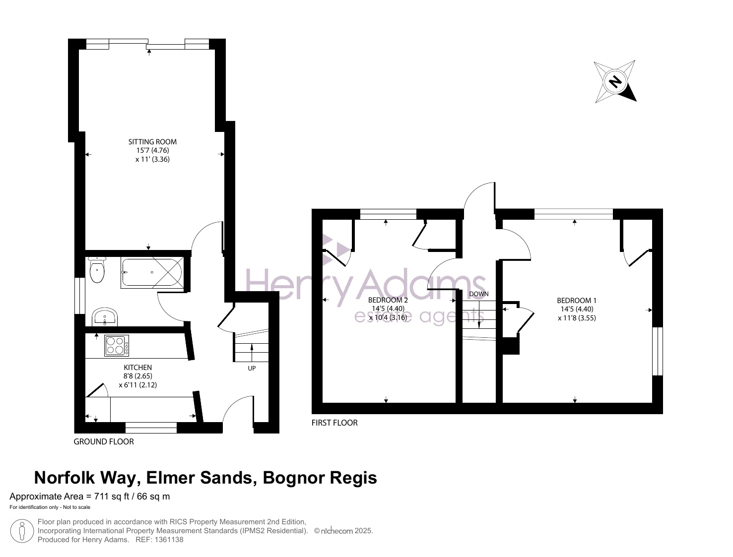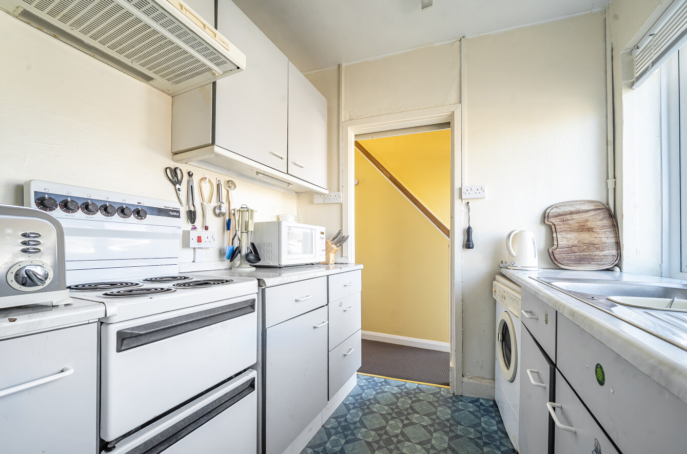 Measuring 711 sq ft, the accommodation comprises entrance hall, galley kitchen, bathroom, and at the rear of the property, a sitting-dining room overlooking the south facing rear garden. Stairs from the entrance hall rise to the first floor landing where both double bedrooms will be found.