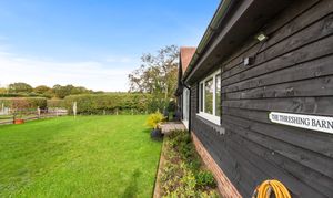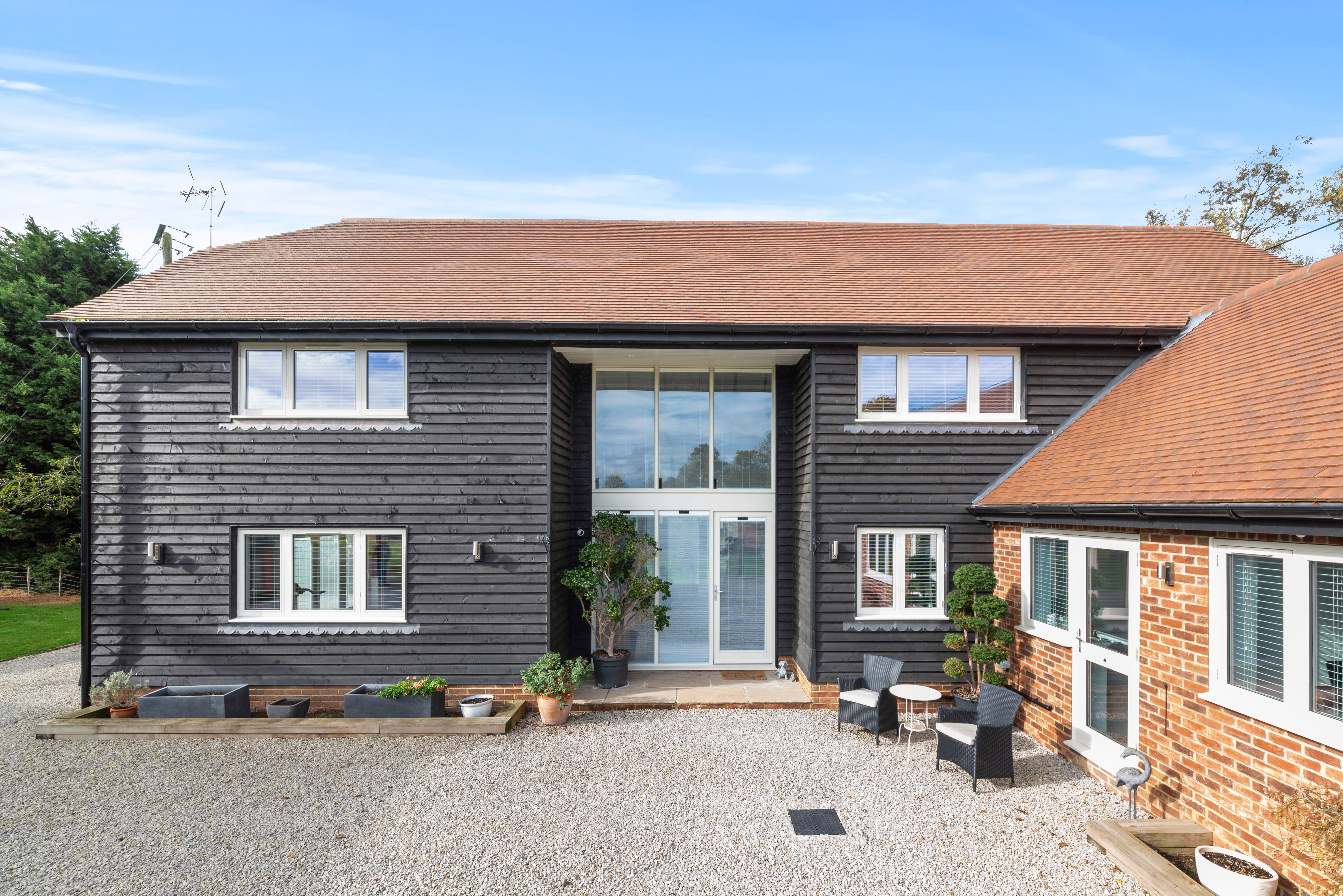 At the heart of Burford Farm sits The Threshing Barn, a truly exceptional detached four-bedroom barn conversion, completed circa 2021 with meticulous attention to detail and craftsmanship. This striking home is a fine example of traditional Kentish architecture thoughtfully reimagined for contemporary rural living, combining character, scale, and high-quality finishes throughout.