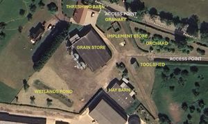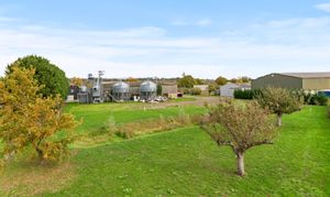 A gently winding gravel driveway leads through the site to generous parking areas, while a newly created wetland pond enhances biodiversity and provides an attractive natural focal point, softening the transition from working farmstead to rural homes.