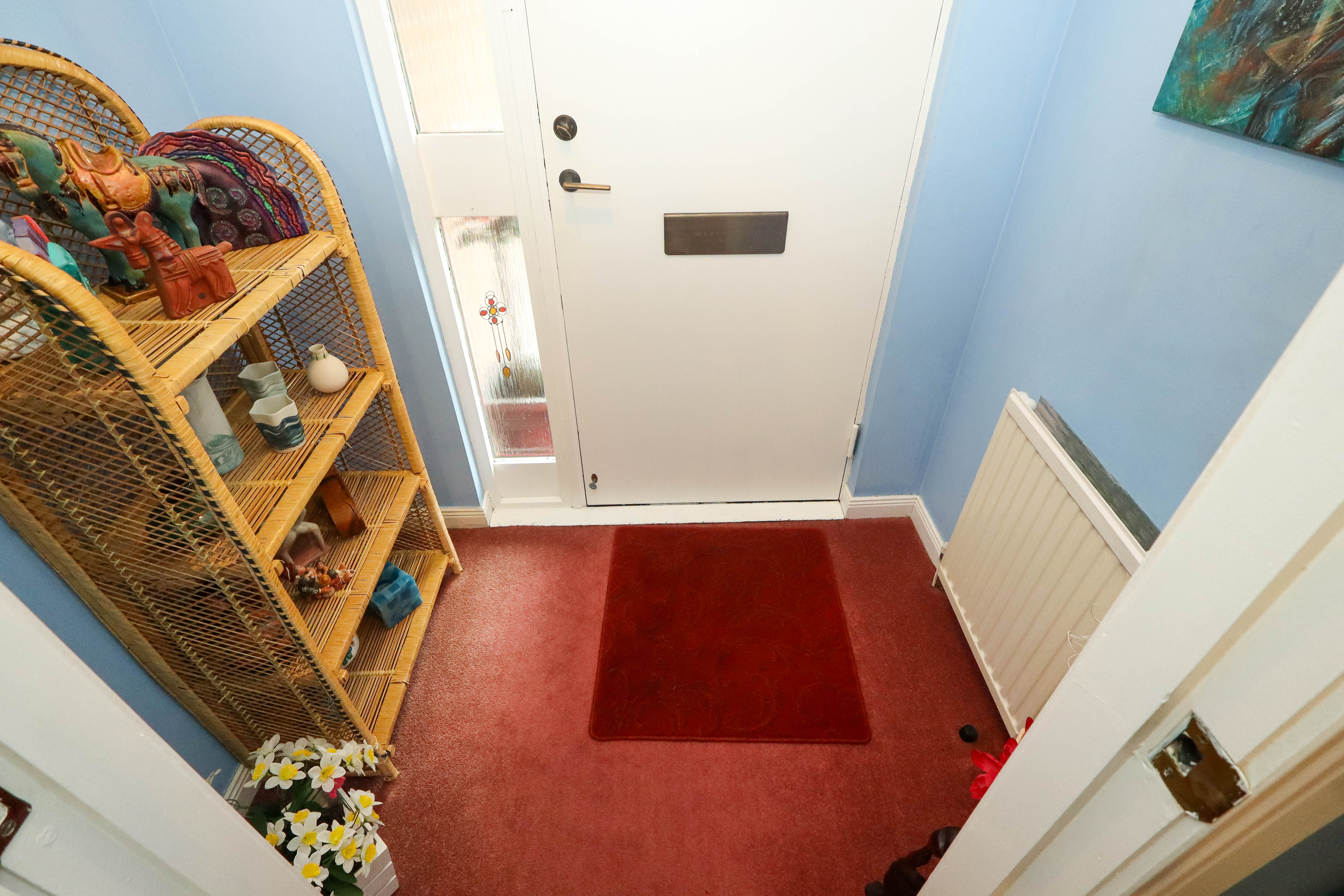 A covered porch invites you into this lovely property to a cosy vestibule with carpeted flooring. Light enters through the glazed panels and complements the painted walls along with a ceiling light. A radiator is also supplied.