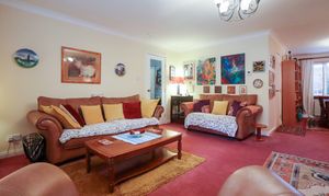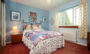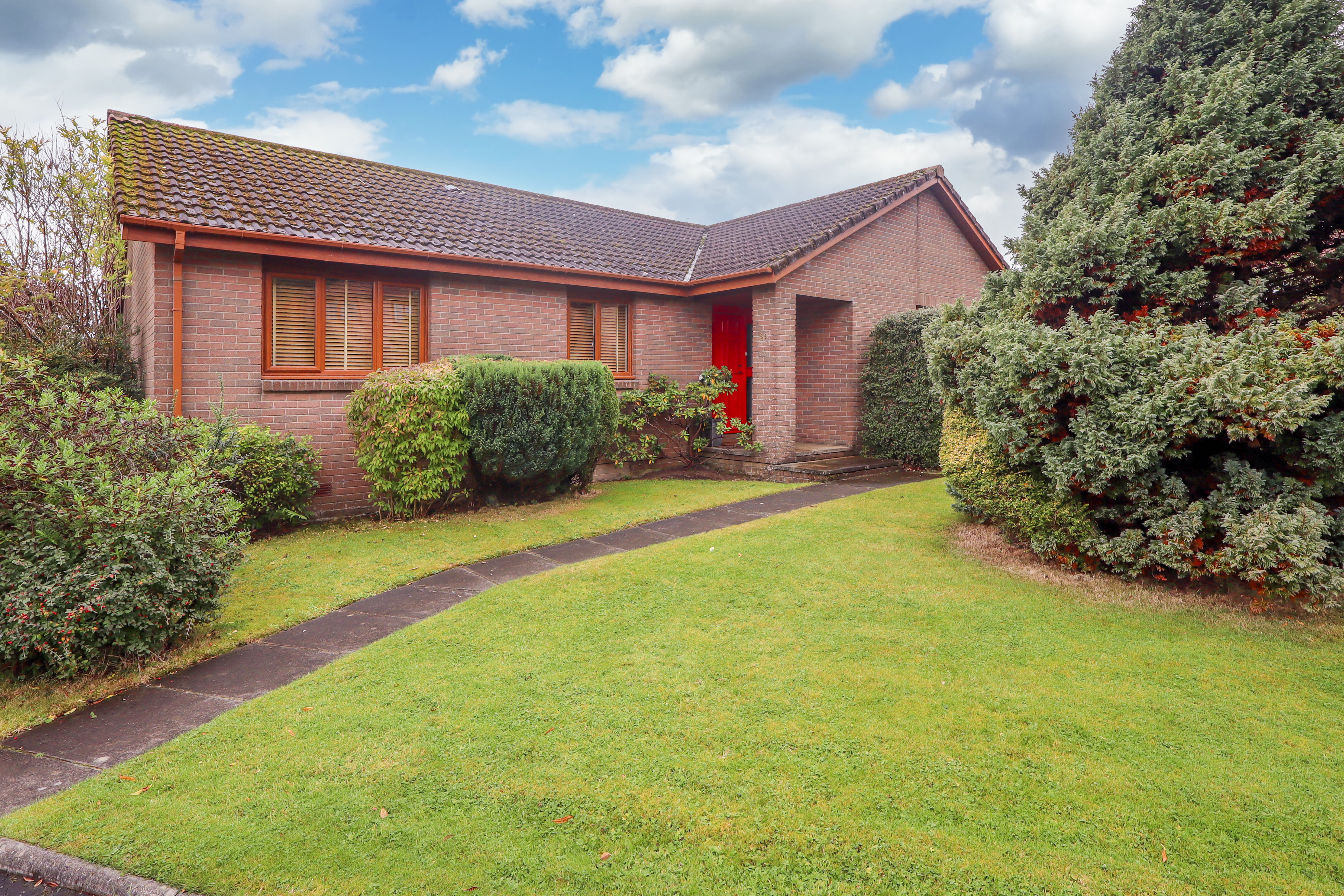 This expansive approach is very welcoming with its grassed areas and mature planting of trees and shrubs. A paved pathway leads to the front door. A side path allows access to the rear garden and garage.