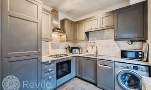 - Contemporary fitted kitchen with stylish units and integrated appliances