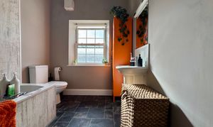 On the main level, the property features a spacious lounge, perfect for relaxing or entertaining, complete with useful built-in storage. The master bedroom is also located on this floor. The kitchen is well-proportioned and functional, while the bathroom is fitted with a bath and shower screen, offering both practicality and comfort.