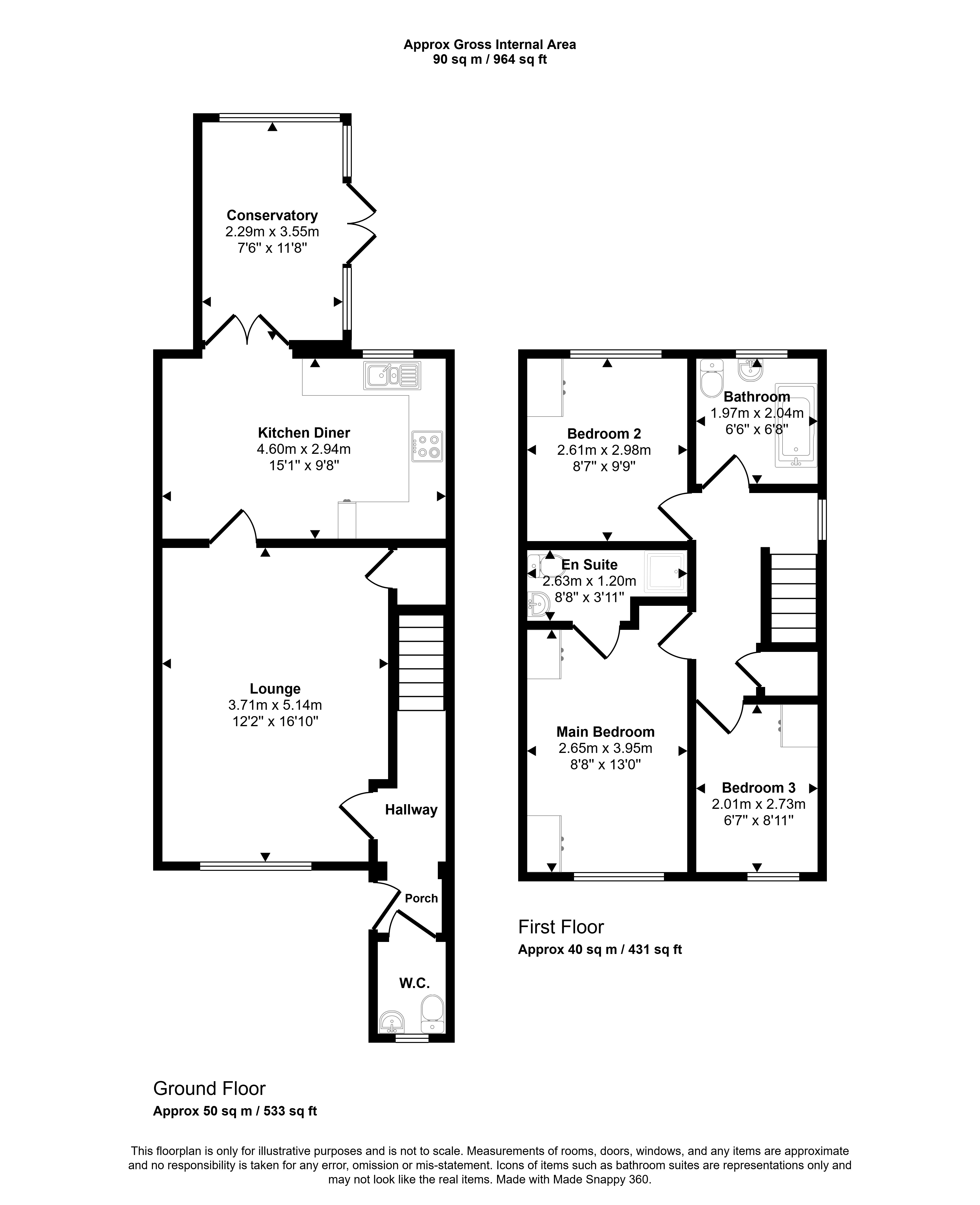 - Lounge, kitchen/diner, and conservatory