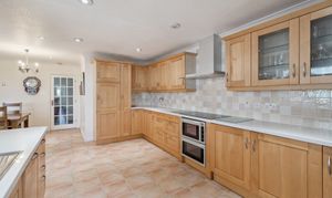 The property opens with an entrance porch leading into a spacious hallway, setting the tone for the generous proportions throughout. The heart of the home is the open-plan kitchen and dining area, complemented by an adjacent utility room giving access to the garden. A formal living room enjoys an abundance of natural light and features sliding doors opening directly onto the rear terrace. A separate dining room flows seamlessly into a charming conservatory.