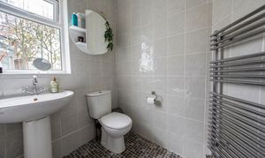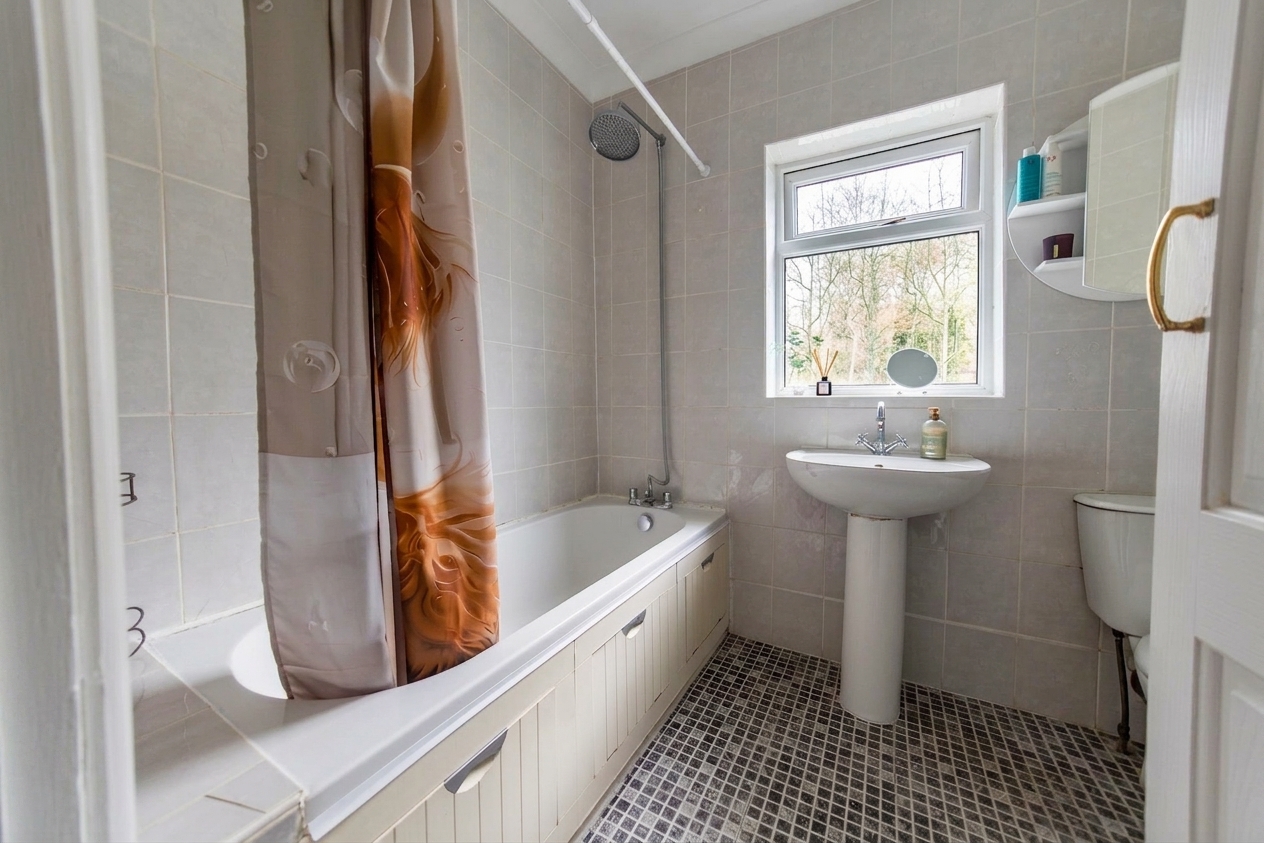 The family bathroom is tastefully appointed and features contemporary fittings, ensuring comfort and convenience for all.