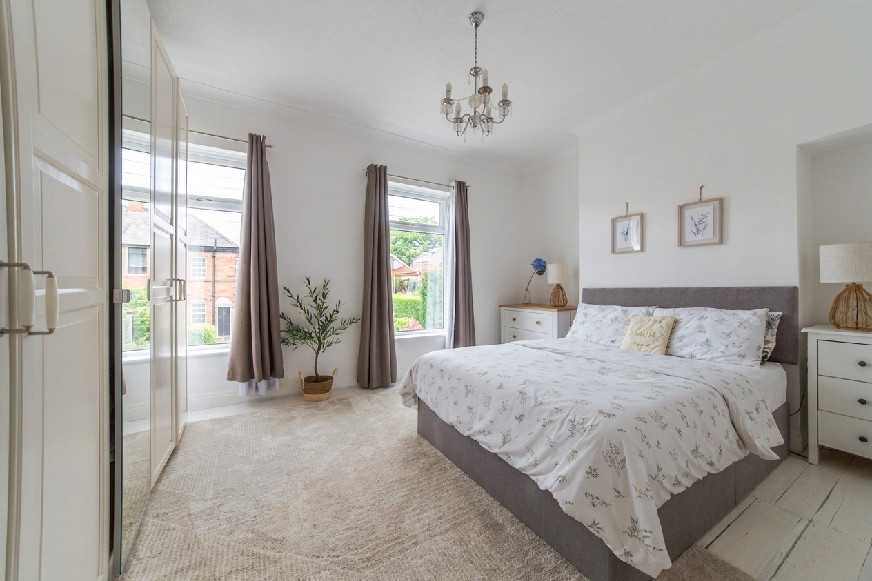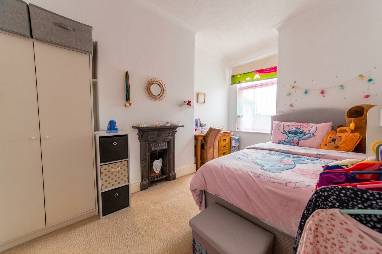 The main reception room is enhanced by a charming feature fireplace, creating a warm and inviting focal point, while the second reception provides flexible space for a formal dining area, family room, or home office.