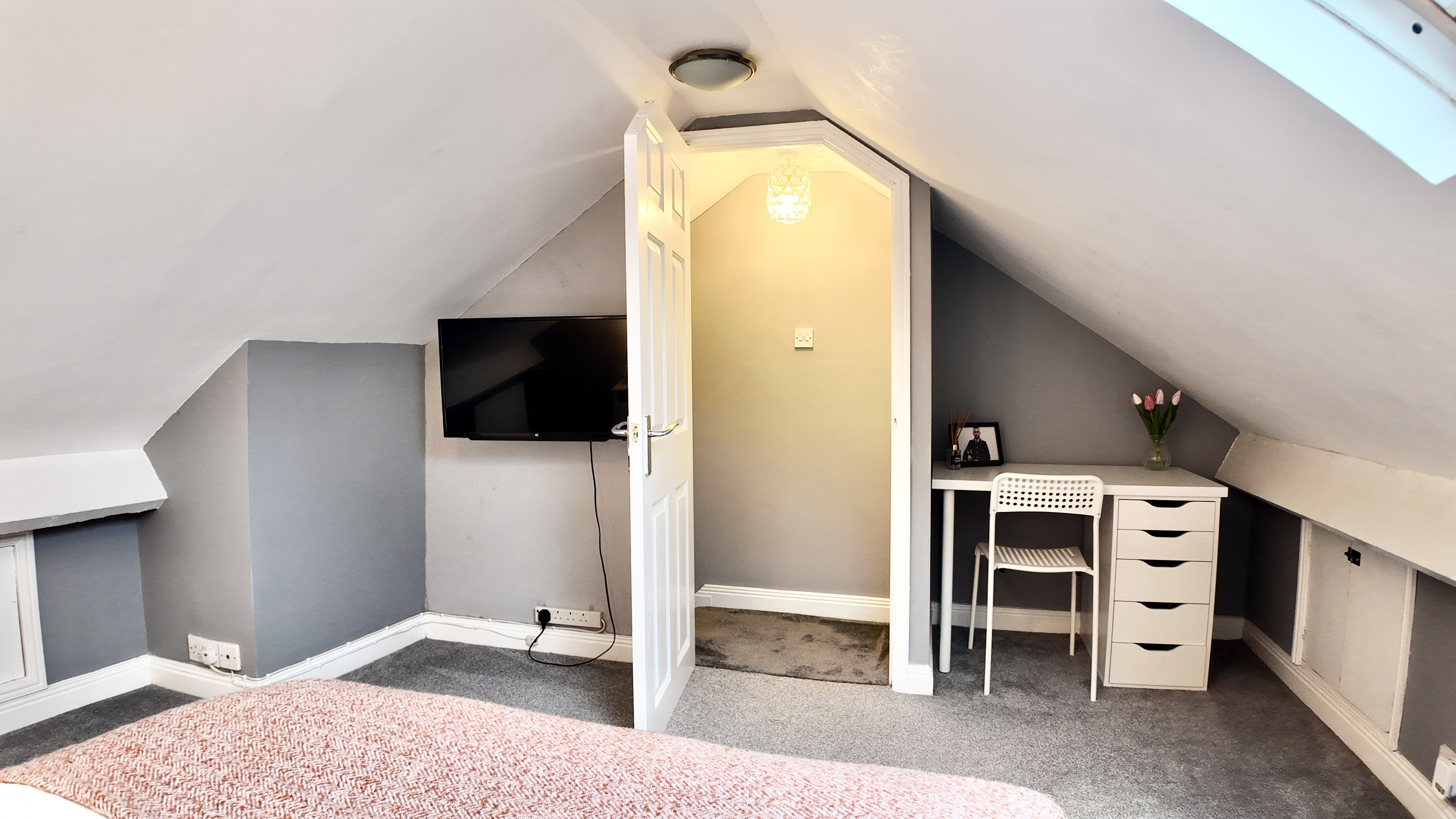 The property offers two double bedrooms and one single bedroom, each tastefully decorated and offering a peaceful sanctuary for rest and relaxation. But the real gem of this home is the converted attic room, a versatile space that can be used as a home office, playroom, or additional bedroom to suit your needs.