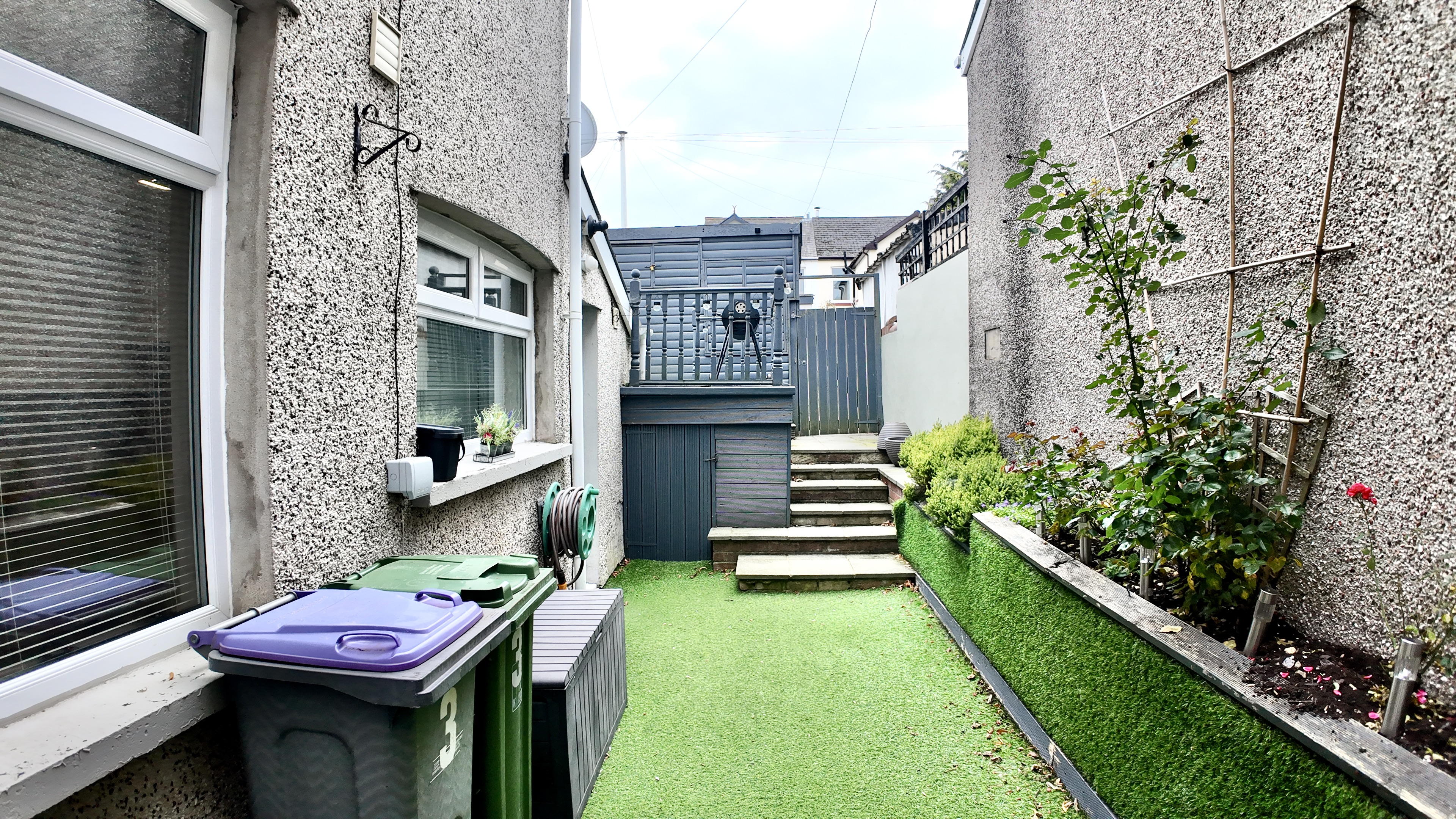 Venture outside to discover the low maintenance rear garden, complete with a patio and decking seating area perfect for al fresco dining or simply relaxing in the sun. The garden also features storage sheds for all your gardening tools and outdoor equipment. Parking is a breeze with access to the rear via the back lane, ensuring your convenience at all times.