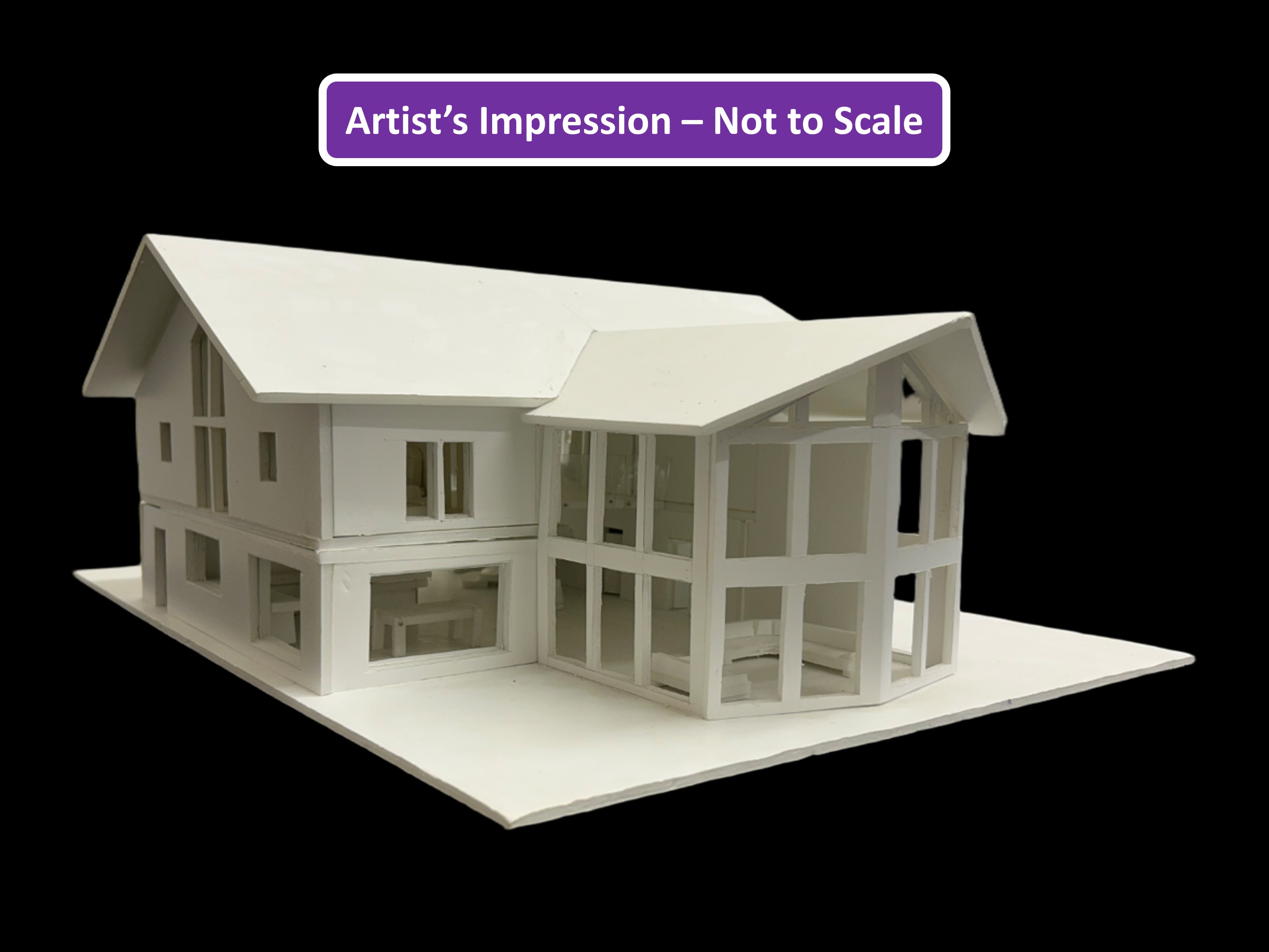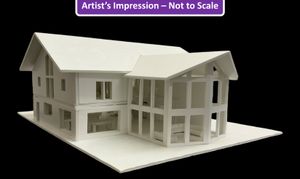 - Artist's impression (not to scale) shows a model of the proposed building in situ on the plot
