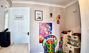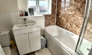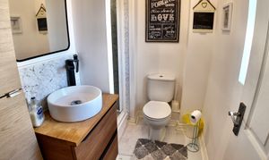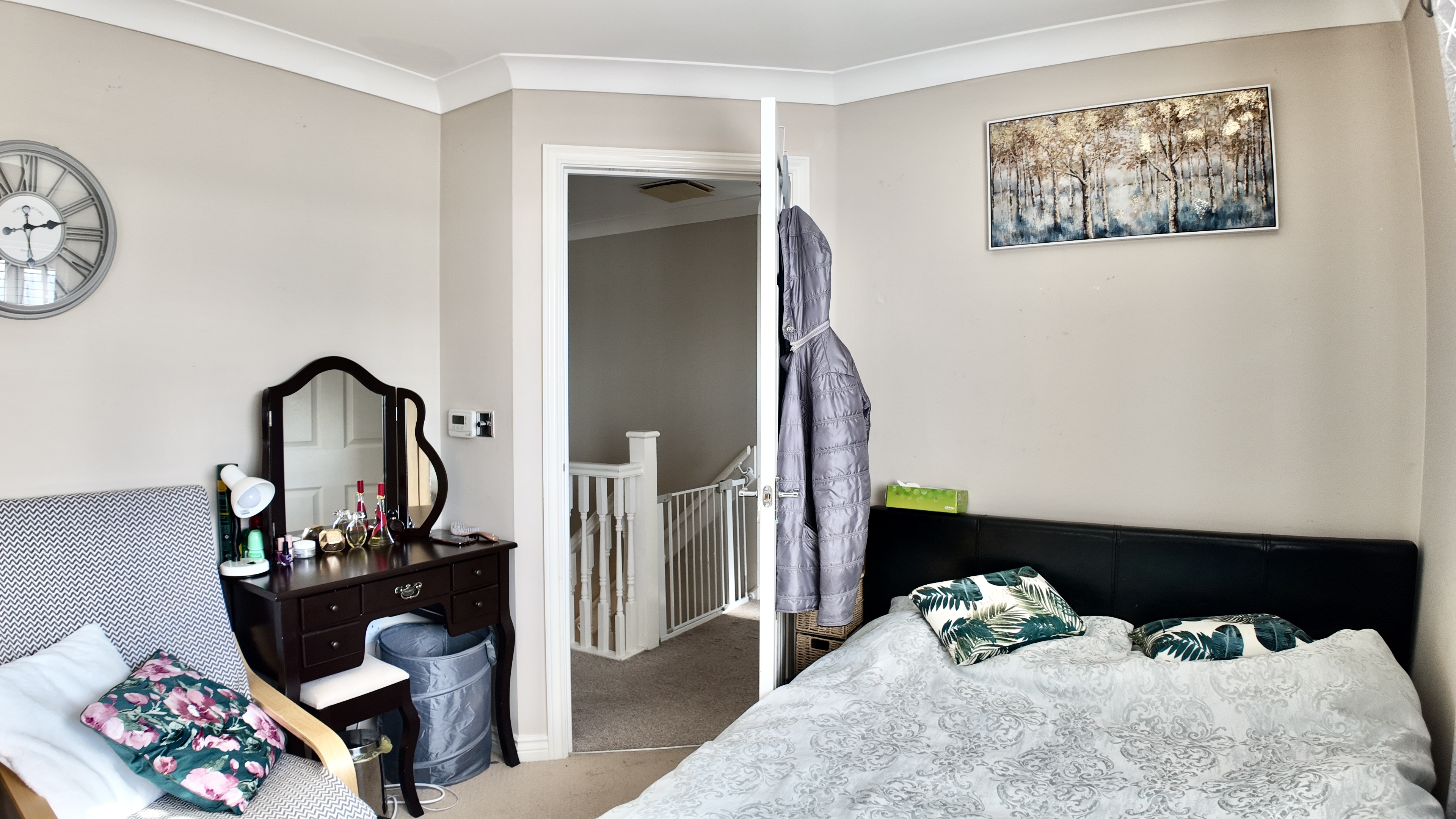 The family bathroom exudes modern elegance, providing a tranquil space for unwinding after a long day. Two further double bedrooms offer spacious accommodation for family members or guests, while the single bedroom can be transformed into a cosy home office or creative space.