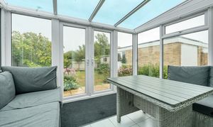 Flowing effortlessly from the main living area is a delightful conservatory, bathed in natural light and offering a view over the garden, a perfect spot for morning coffee or home home office.