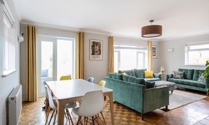 From the moment you step inside, you are greeted by a sense of light and space. The entrance hall leads through to the recently fitted open-plan kitchen/sitting/dining room. This dual-aspect space is the true heart of the home, ideal for entertaining, relaxing, or family gatherings. The kitchen area is well-appointed with integrated appliances, generous worktop space, and ample storage.