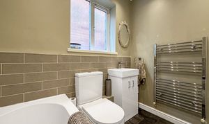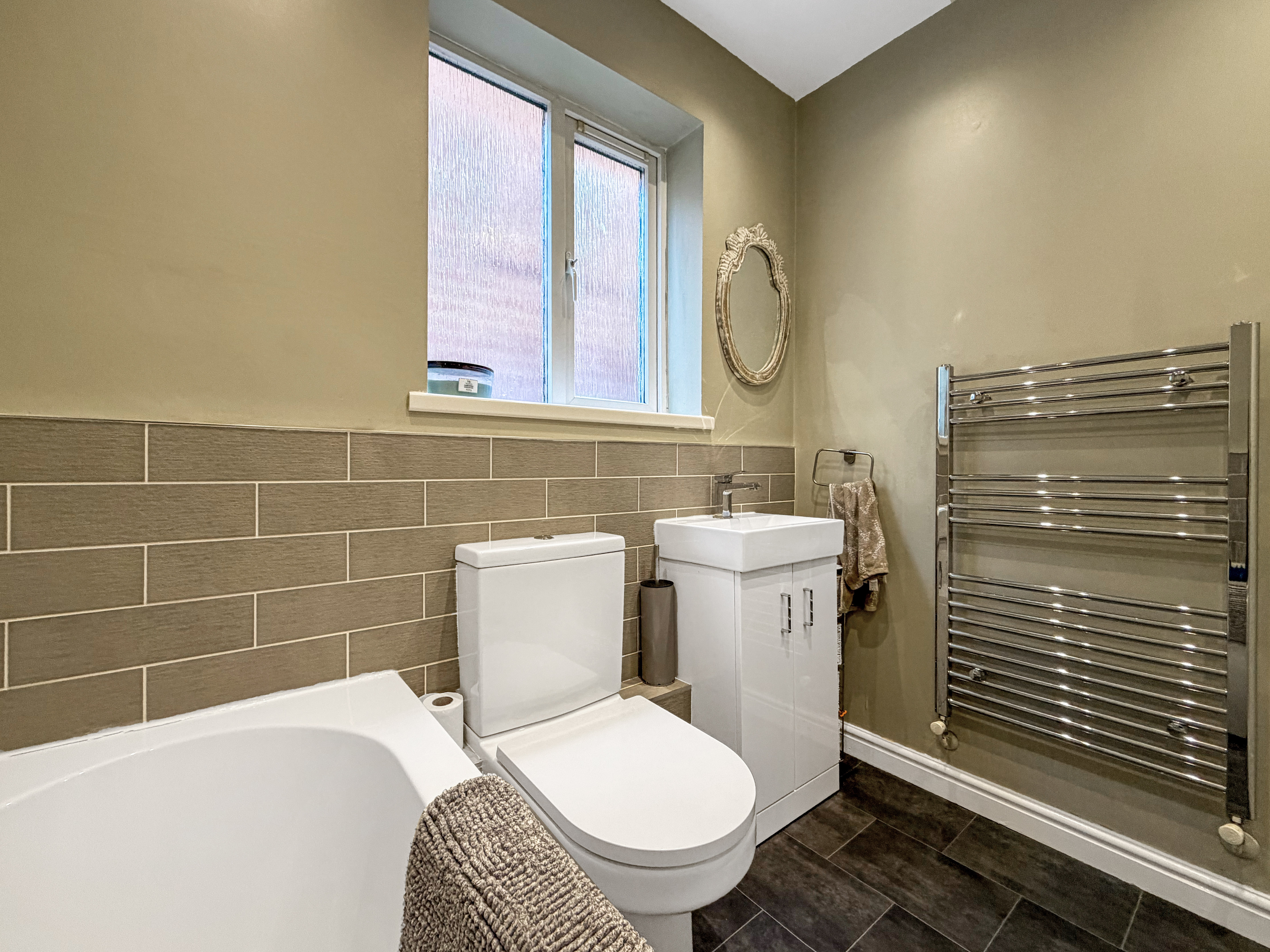 The master bedroom benefits from a stylish en-suite shower room, while the remaining bedrooms are served by a sleek, modern family bathroom finished to a high standard.