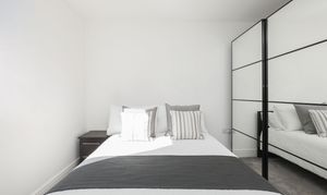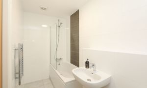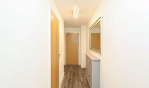 The double bedroom is generously proportioned and comes fully furnished, offering both comfort and convenience. A modern bathroom accompanies the bedrooms with a three-piece suite. An entrance hall with useful cloak storage adds to the practicality. Further benefits include secure intercom and fob entry, along with lift access to all floors.