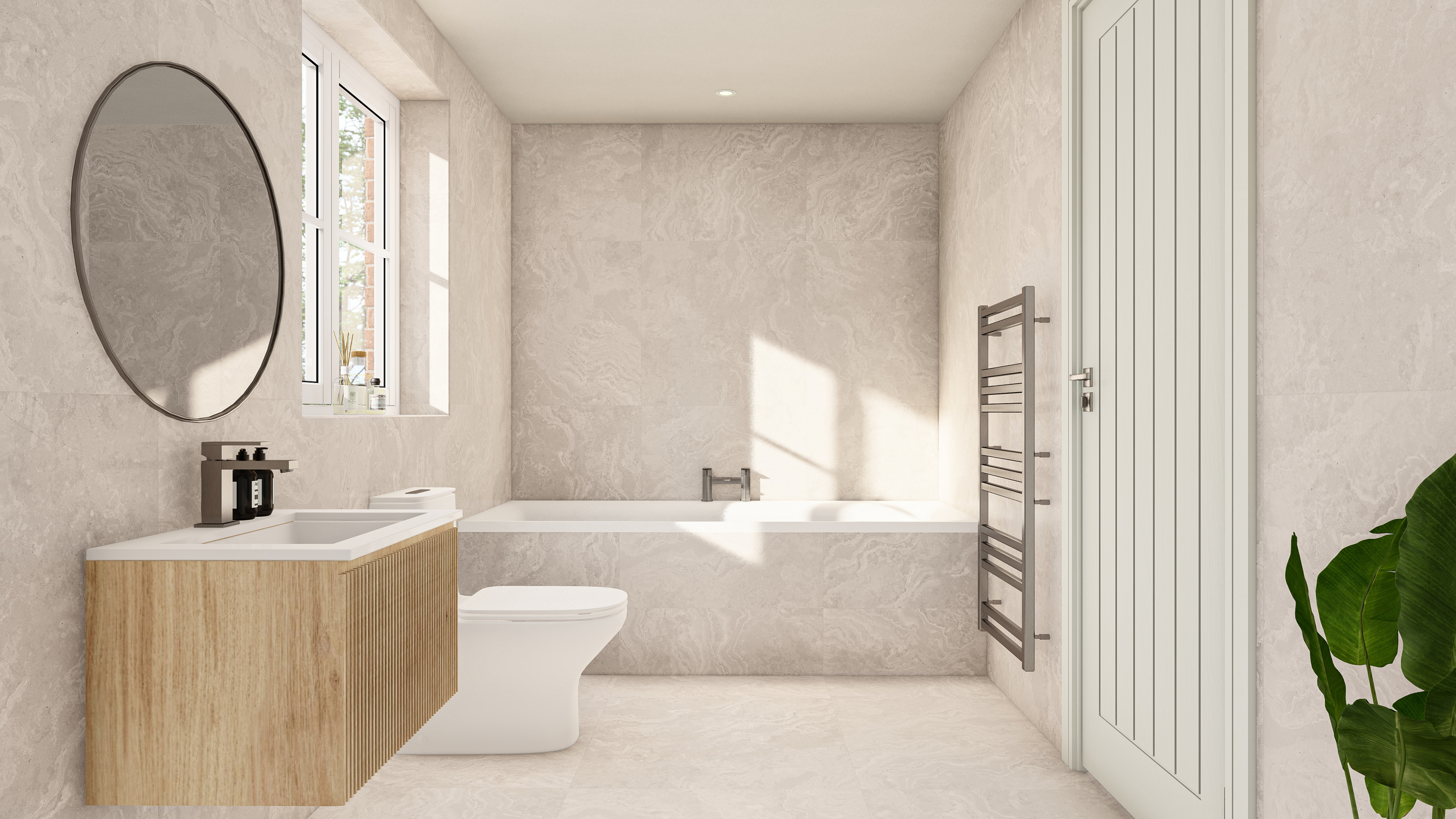 Upstairs, the principal bedroom impresses with its own dressing room and an ensuite. Two further well-proportioned bedrooms and a main bathroom (featuring full height tiling for a sleek, contemporary finish) ensure ample space for family or visiting guests.