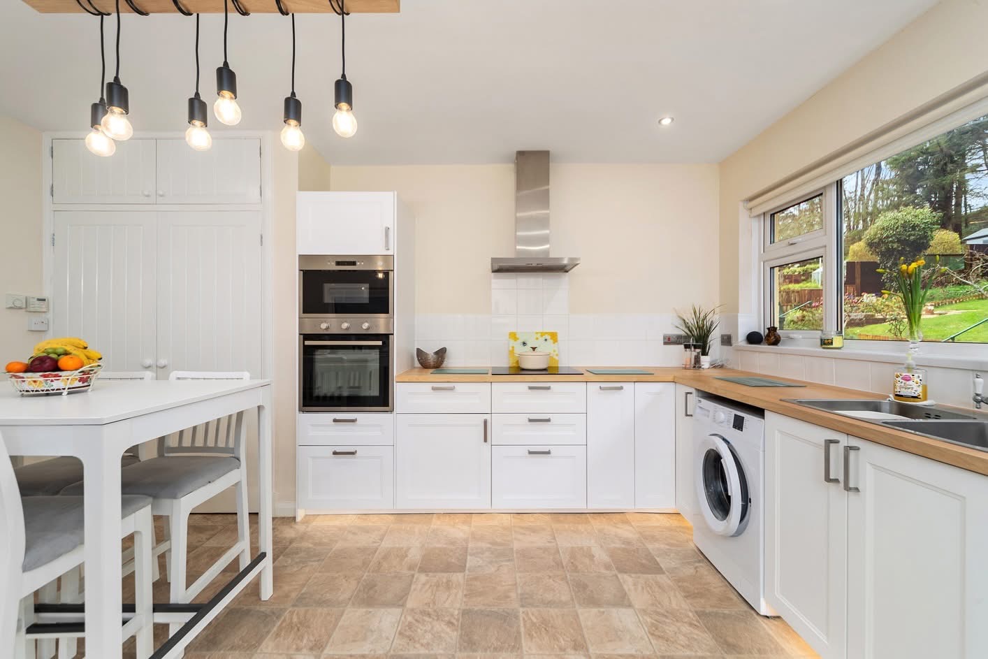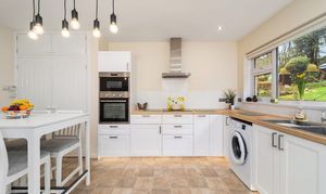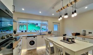 - Fully fitted Breakfast Kitchen with large window to the rear offering views over the rear gardens, with double oven and hob and space and plumbing for appliances.