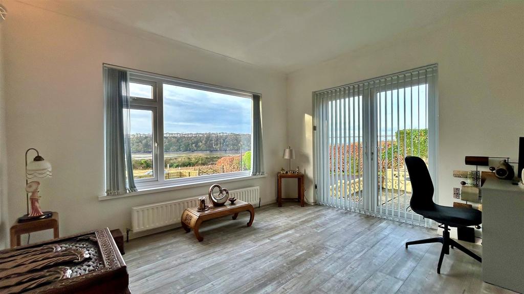 A wonderful space with windows and double UPVC double glazed doors opening out onto a patio seating area, overlooking the spectacular water views. Radiator, ceiling light point, coving to ceiling. Laminate to flooring.