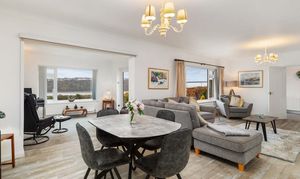 The property is bright and spacious throughout, with a superb open-plan living and dining area that flows seamlessly into a sun room, perfectly positioned to take full advantage of the panoramic outlook. Large windows flood the space with natural light, creating a warm and inviting atmosphere ideal for both relaxing and entertaining.