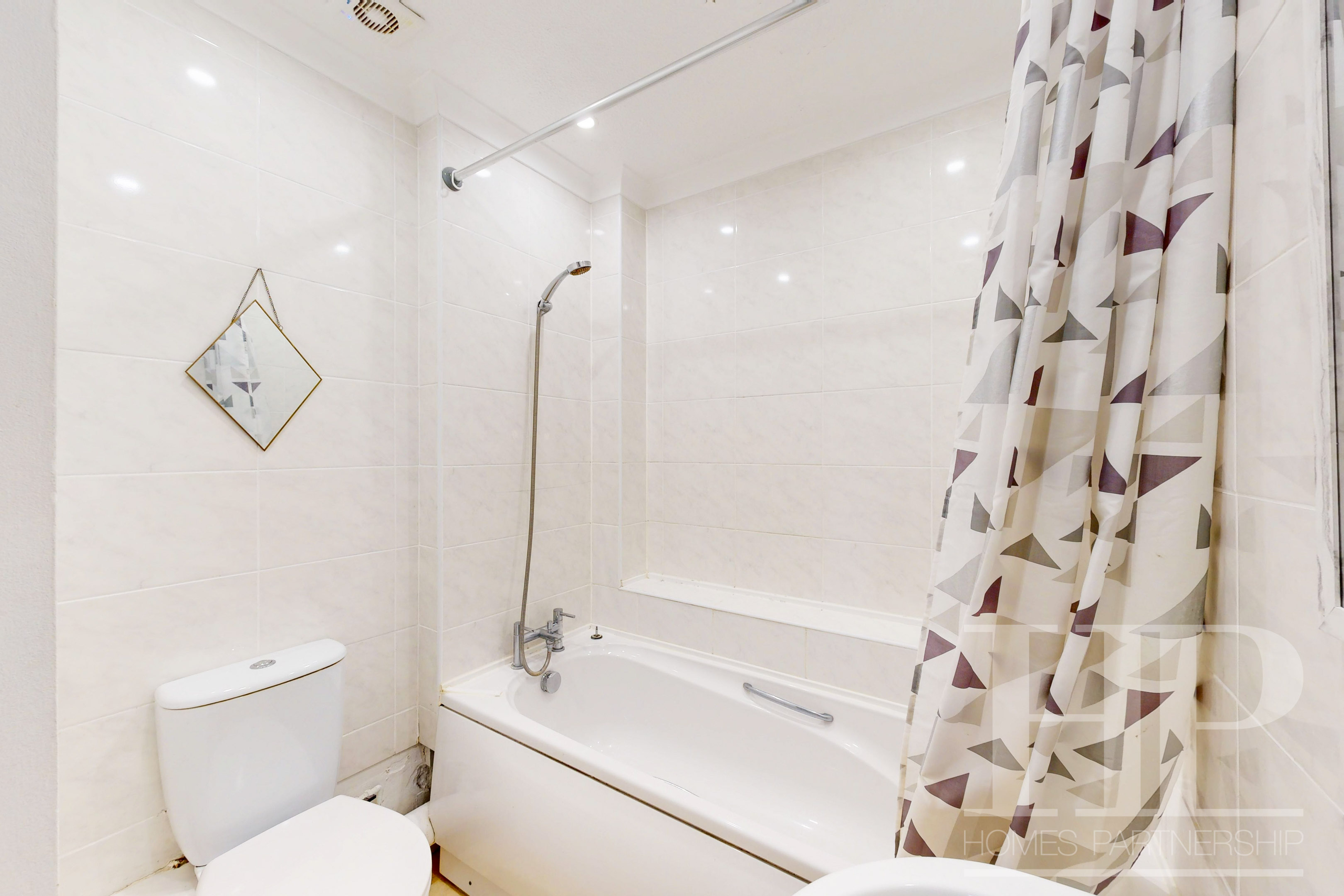 - Bathroom fitted with a white suite with a shower over the bath