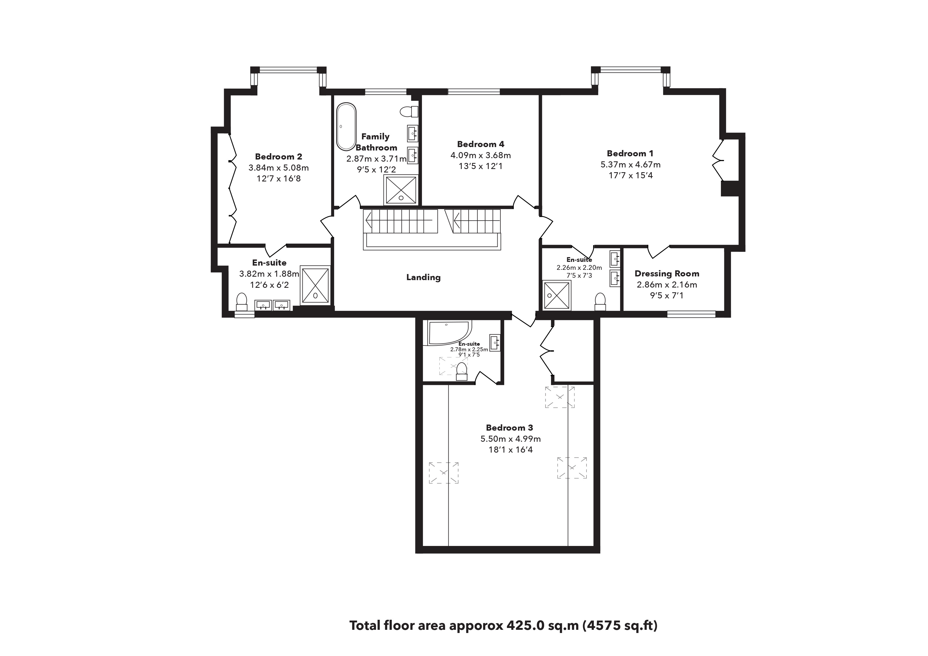 Principal Bedroom with Dressing Room and En-Suite | Bedroom Two with En-Suite | Bedroom Three with En-suite | Family Bathroom | Bedroom Four