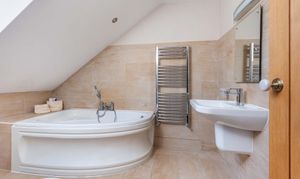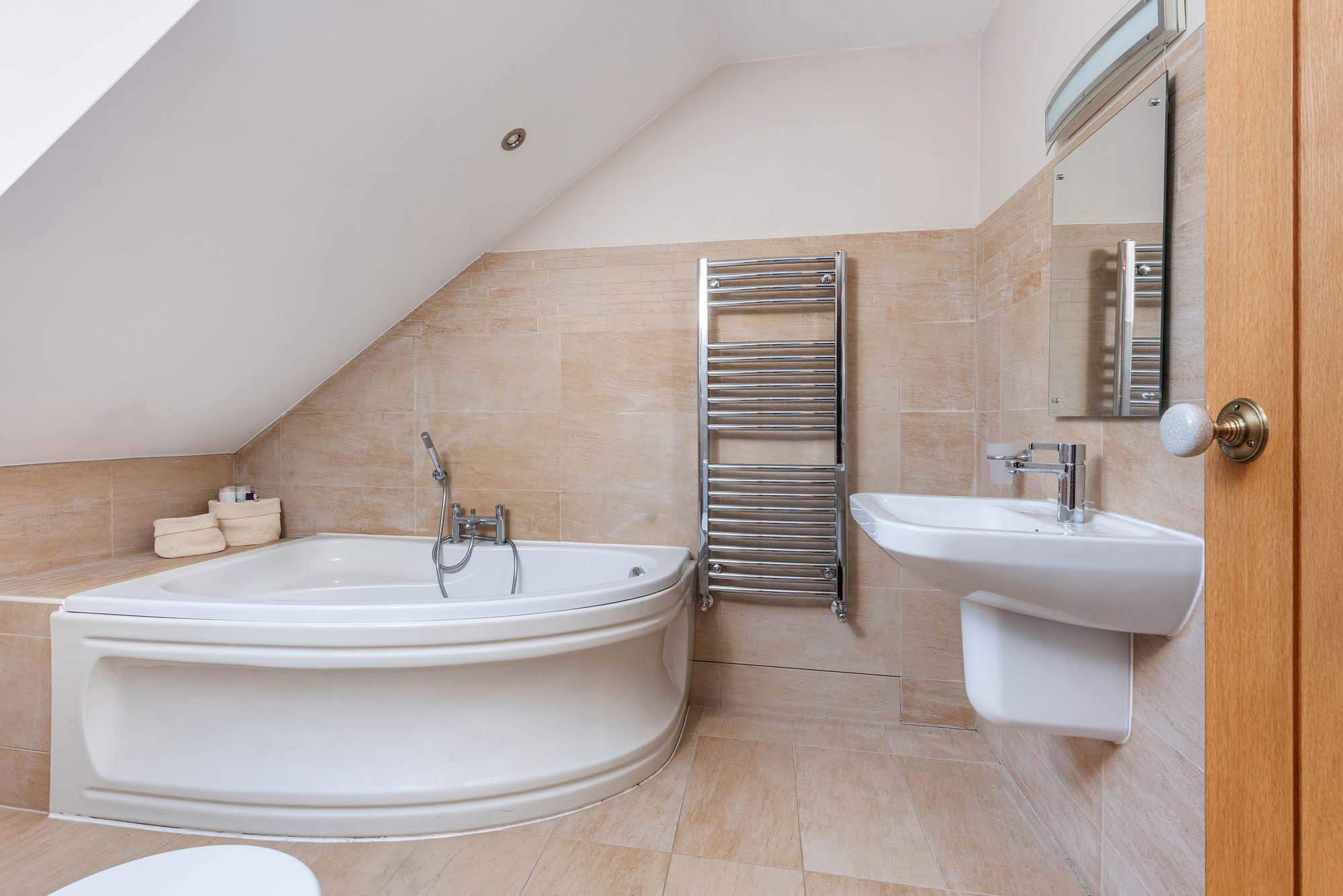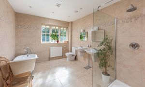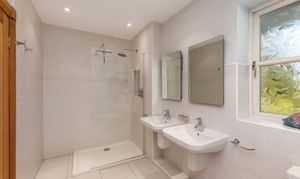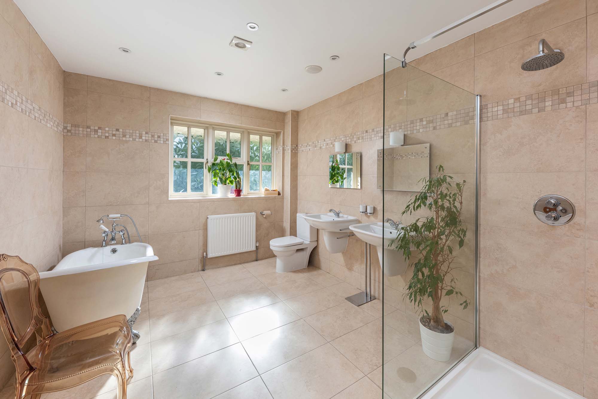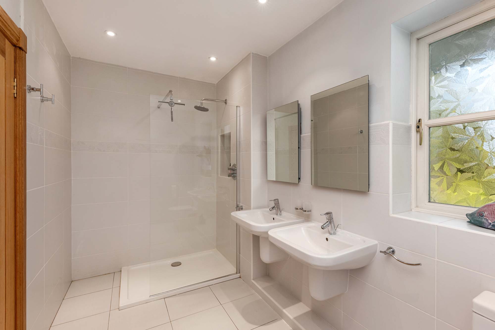 Ascending to the first floor, a spacious landing leads to four impeccably decorated bedrooms and a stunning family bathroom, featuring a large walk-in shower and an exquisite roll-top bath. Three of the bedrooms boast their own elegantly appointed en-suites, while the principal bedroom offers an extra touch of luxury with a private dressing room. Three of the bedrooms are enhanced by solid oak fitted storage and each bathroom is fitted with premium ‘Villeroy & Boch’ fixtures.