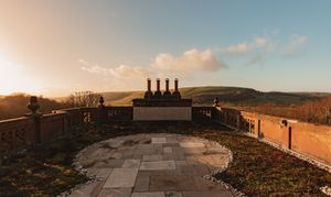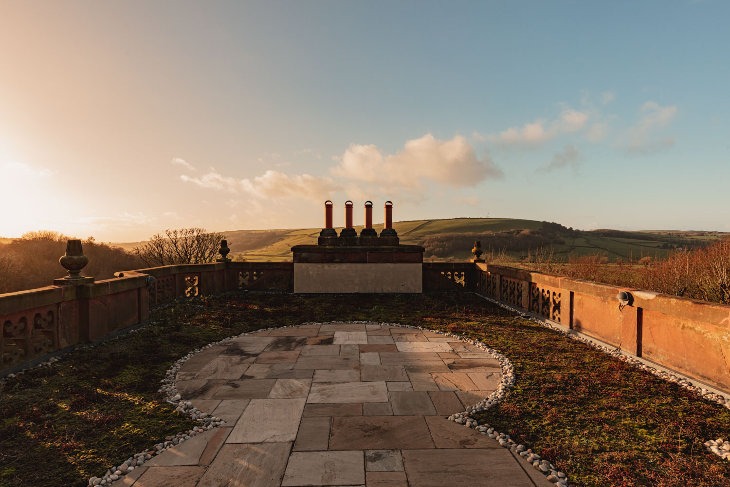 A paved rooftop garden sits above the main house, taking full advantage of the elevated position and far reaching countryside views. Thoughtfully finished with stone paving, integrated power and water connections, the space is well suited to outdoor seating, planting or evening entertaining. Areas of established vegetation have been introduced to provide natural insulation and soften the setting, creating a distinctive and highly usable outdoor space that feels both practical and rare in a property of this type.