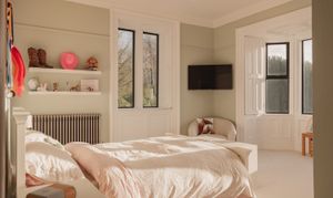 Beyond the main landing, the accommodation extends seamlessly into the coach house wing. Two double bedrooms sit alongside a third room, currently arranged as a home office, together with an additional shower room, all accessed via a short flight of steps and their own hallway. This area offers a welcome degree of independence, ideal for guests, older children or extended family, while remaining fully connected to the main house.