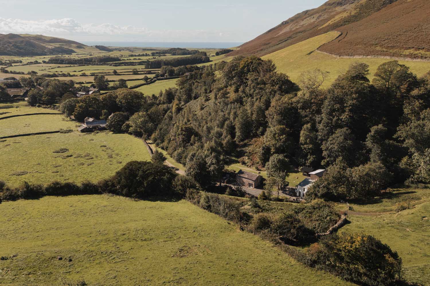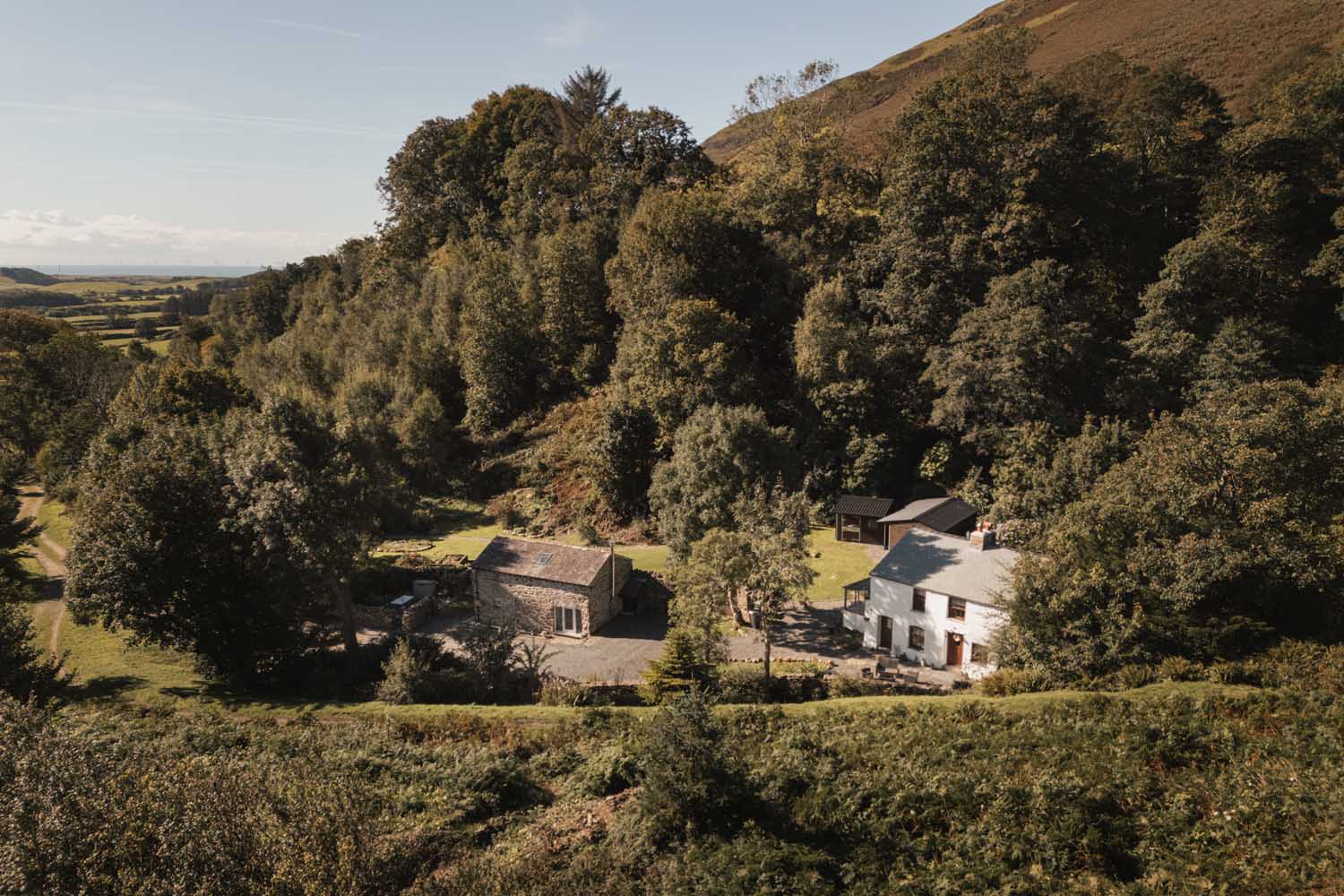 The whole holding feels deeply rooted in its setting. The beck can be heard from the gardens, the footbridge draws the eye as you approach and the fellside rises behind the houses.