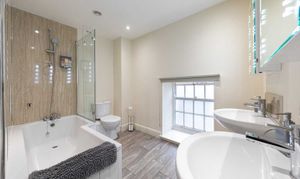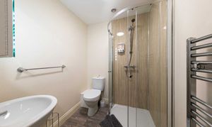 The upper floors are arranged as ten en-suite bedrooms, offering flexible guest accommodation. Individually presented, these rooms balance comfort with character, featuring sash windows, thoughtful decorative touches and modern en-suite bathrooms with a mix of baths and showers. Their configuration and scale provide scope for continuation of the existing business or, subject to consents, adaptation for other potential uses.