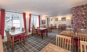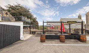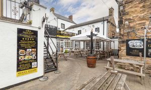 The property fronts directly onto Main Street, a prominent position within Haltwhistle’s historic core, only a short walk from the railway station, bus stops and the Hadrian’s Wall tourist bus route. To the rear, a generous terrace and beer garden provide outdoor seating, well-placed to capture footfall from visitors returning from the nearby walking trails. The outdoor spaces are neatly enclosed and thoughtfully arranged for both casual drinks and larger events, with four allocated parking spaces available to the rear for staff and guests.