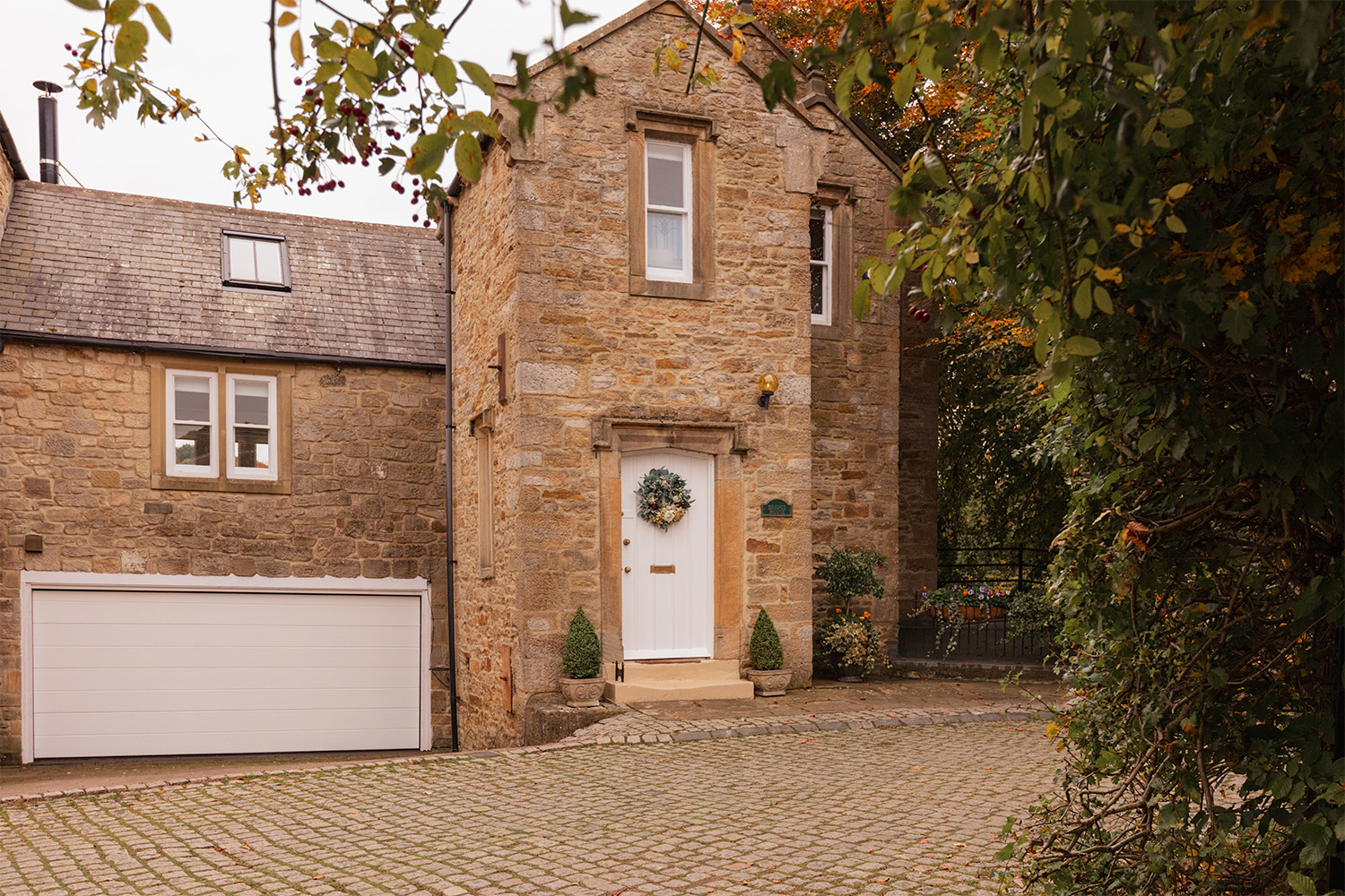 Approached over the cobbled crossing by the listed Lintzford Bridge, the house reveals fine stonework with high detailing around the windows, the façade sitting naturally within its landscape. Architectural lighting and sculptural planting add structure after dusk. Private parking sits alongside an integral double garage, together with electric car charging points.
