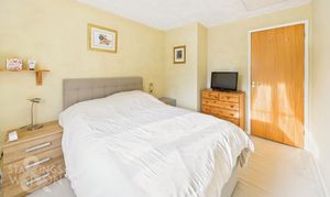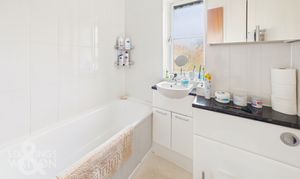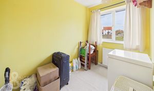 The first floor landing splits in each direction to allow access to each of the bedrooms as well as the updated three piece bathroom suite complete with a shower head and glass screen over the bath, predominantly tiled surround, vanity storage and wall mounted heated towel rail. The smaller of the bedrooms sits just next door to the bathroom currently used as a storage space, this carpeted bedroom would make the ideal single bedroom, nursery or potential home office setup. The larger of the bedrooms sits towards the front of the home enjoying the views towards the front with open carpeted floor space more than large enough to accommodate a double bed with additional storage solutions and soft furnishings with the added addition of built in storage space and airing cupboard.
