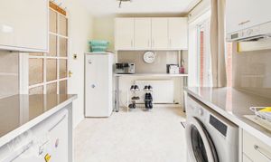 Once inside, the central sitting room is the first space to greet you laid with carpeted flooring giving a potential choice of soft furnishings and remaining incredibly well lit, courtesy of the uPVC double glazed window to the front of the home. Stairs for the first floor can be found here as well, whilst a glass panelled wooden door takes you into the kitchen at the rear of the home. The kitchen offers an array of wall and base mounted storage units to include integrated appliances such as an oven and hob with extraction above whilst the gas combination boiler sits on the external wall. The adjacent side of the room gives further breakfast bar seating and wall mounted storage with a glass panelled door taking you into the rear garden again, allowing natural light to fill the space.