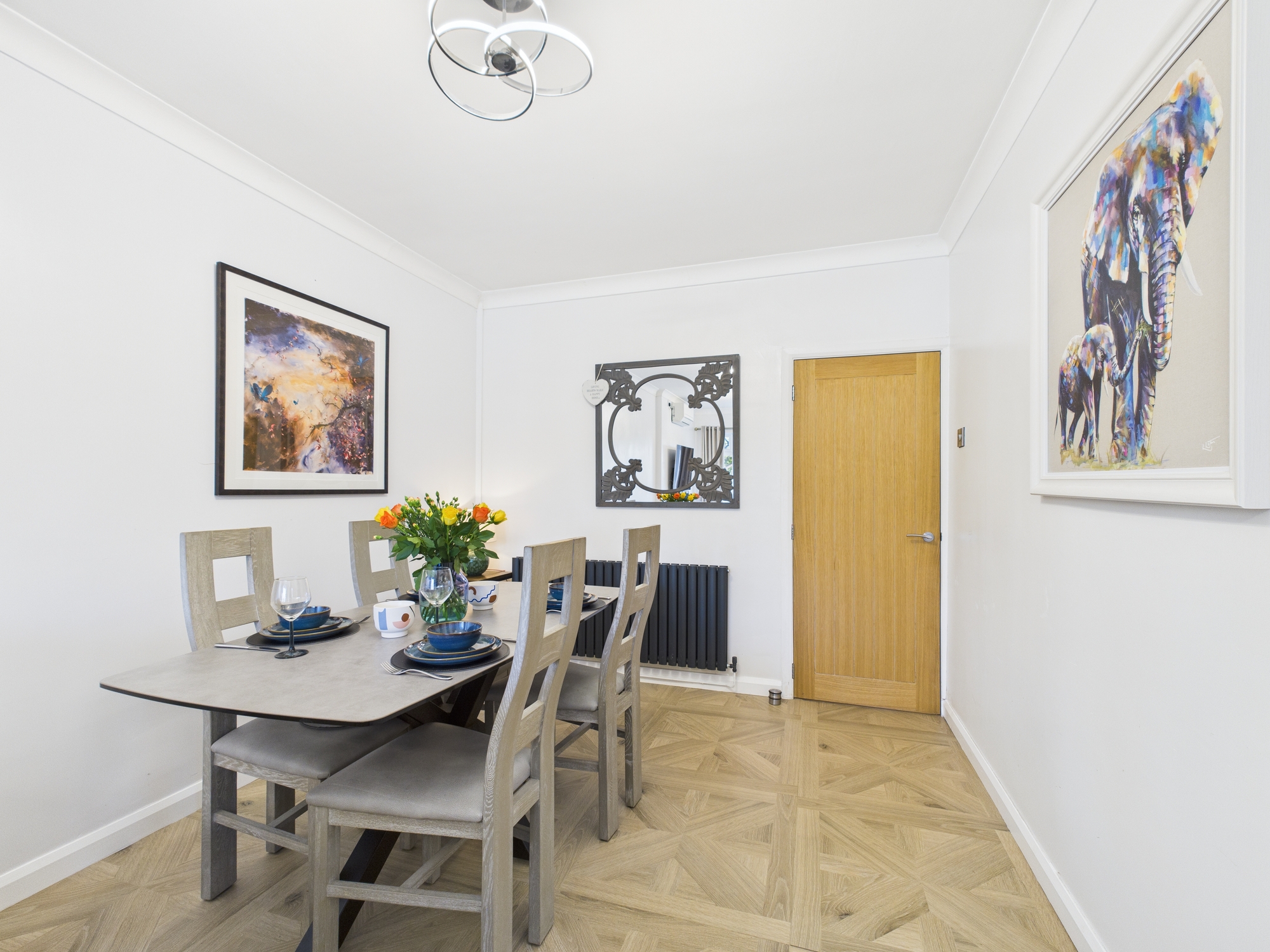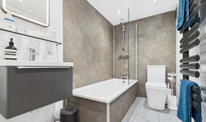 A remodelled rear room offers superb flexibility—ideal as a third bedroom, home office, or additional sitting area—with the added convenience of being adjacent to a stylish modern bathroom complete with a white three-piece suite and electric underfloor heating.