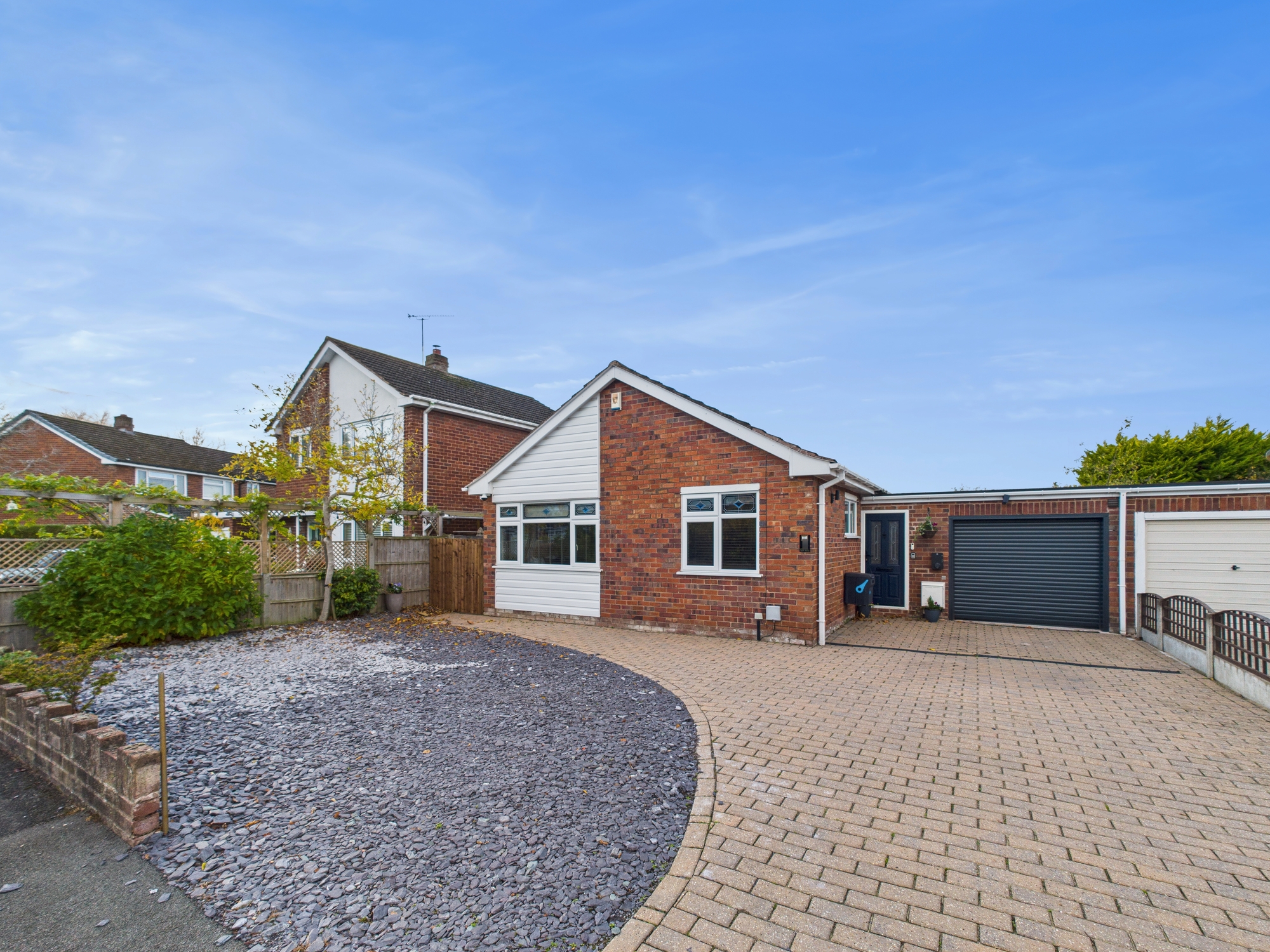 The property has been significantly improved and reimagined by the current owners, offering a stylish and flexible layout to suit a range of lifestyles. A spacious block-paved driveway provides ample off-road parking and features a low-maintenance slate-chipped section, an EV charging point, and access to the converted garage, now functioning as a useful storage space with a newly fitted remote-operated electric roller door.