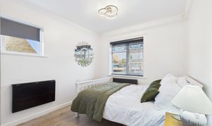 To the front are two well-proportioned double bedrooms, each offering ample space for a range of furniture. The refitted shower room exudes luxury, featuring a walk-in tiled enclosure with floor drainage, privacy screen, and a high-spec multi-jet shower system with overhead and hand-held controls.