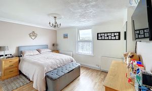 Step inside to find a light and inviting living room, elevated from the road and towards the end of a cul-de-sac location. Beyond the living room is an equally bright and spacious dining room, currently used as a second sitting room, followed by a modern kitchen and a stylish, contemporary bathroom, perfect for today’s lifestyles. Light floods through the home, giving each room a bright and airy feel. Two of the three bedrooms are doubles, providing flexible living for families or those working from home.